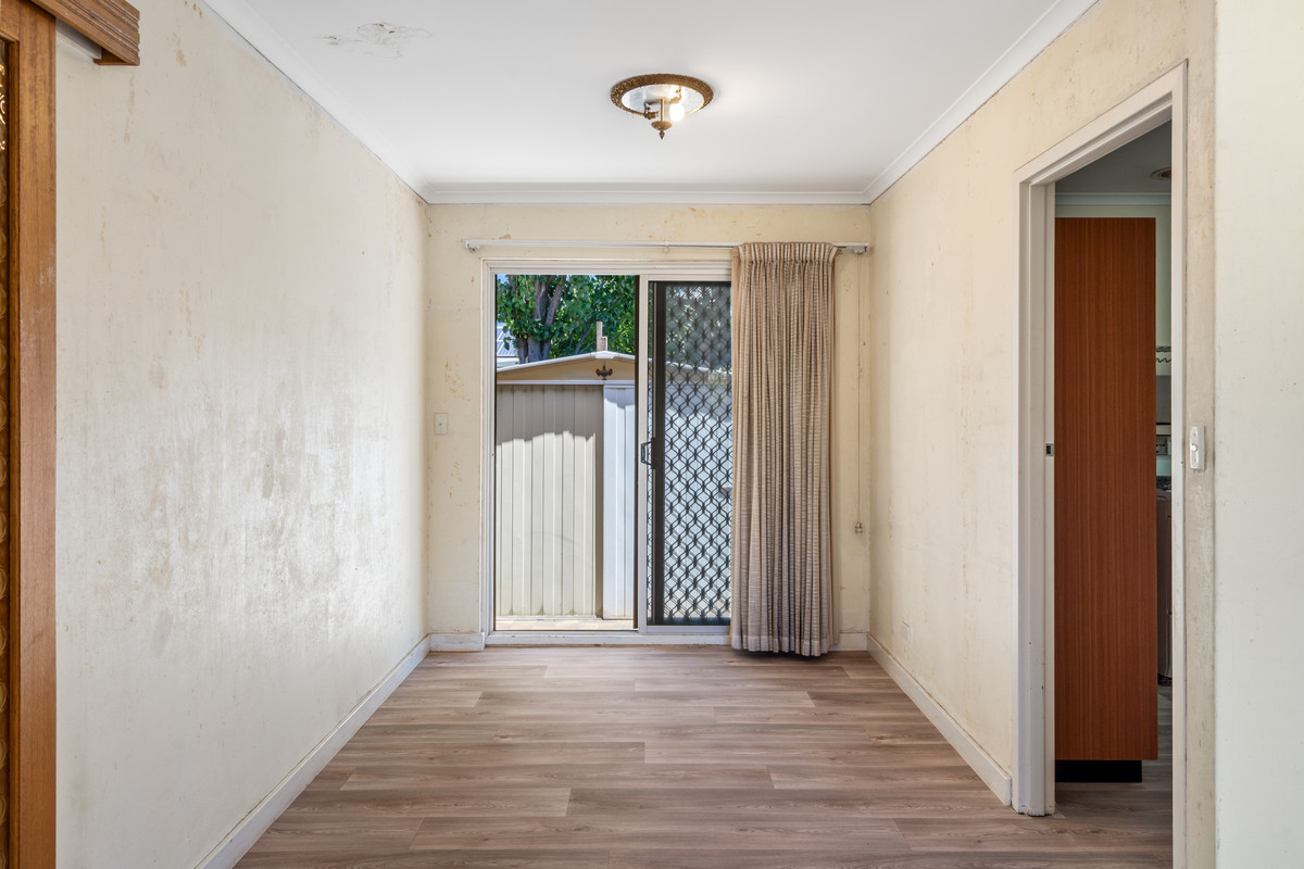 Step inside to a spacious lounge room that flows through to the dining area, where large windows draw in plenty of natural light and give the space an airy, welcoming feel. The original kitchen sits just beyond, connecting through to the laundry with handy external access. A separate wing of the home houses two generously sized, carpeted bedrooms, both serviced by a central bathroom complete with a bathtub and shower, all in original condition and ready for a refresh.