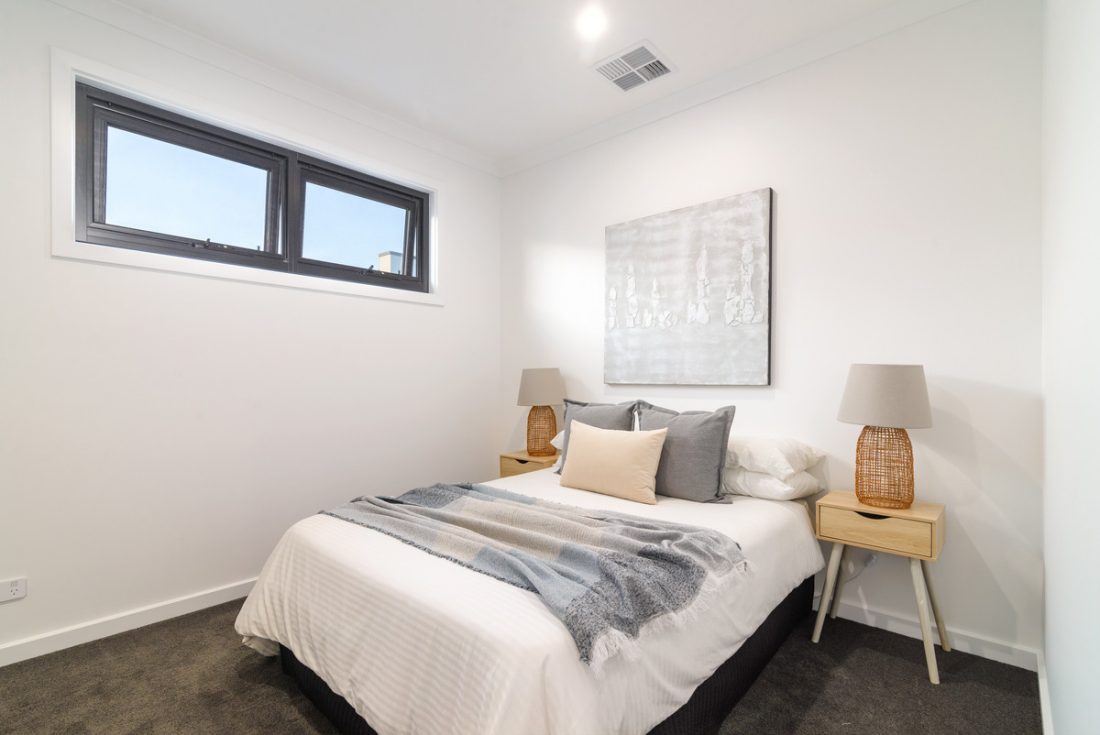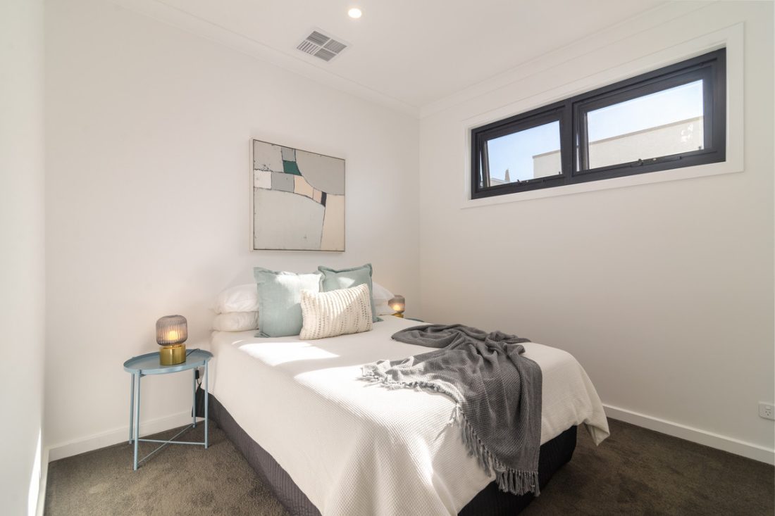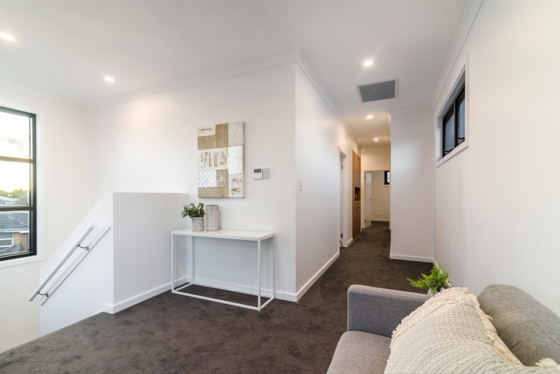 As you explore the home, you’ll notice the timber-look floating floors providing a contemporary and low-maintenance foundation, while plush carpeting in the three bedrooms and the first floor adds warmth and tranquility. Upstairs, a sunlit retreat offers a perfect hideaway. All three bedrooms on this floor include built-in robes, ensuring practicality, with the main bedroom featuring its own ensuite bathroom and walk-in robe.