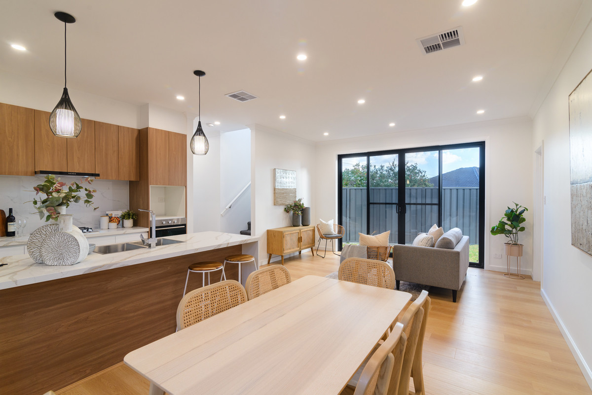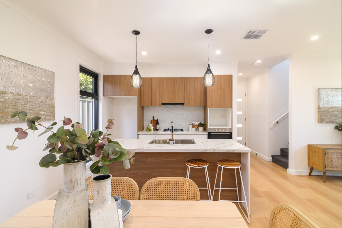 Say hello to modern elegance and unparalleled comfort in this brand-new property located in the thriving suburb of Modbury. Featuring an open-plan kitchen and living area illuminated by natural light streaming through black-framed windows, this home is perfect for culinary enthusiasts and entertainers. The kitchen boasts stylish stone benchtops, Euro stainless steel appliances including a gas cooktop, wall oven, and dishwasher, all complemented by a tiled splashback.