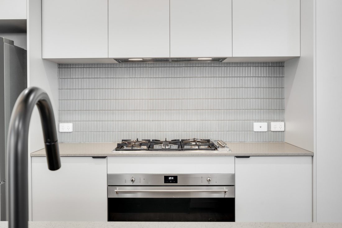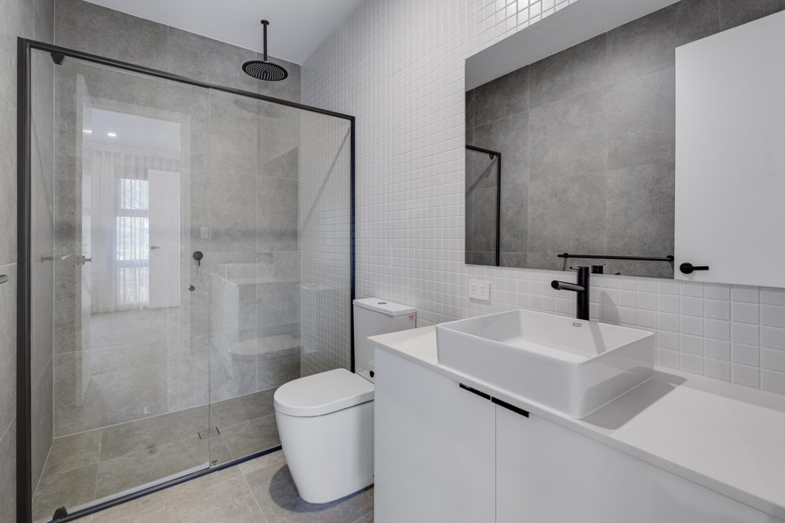 – Stylish bathrooms with floor-to-ceiling tiling, black tap-ware and great storage