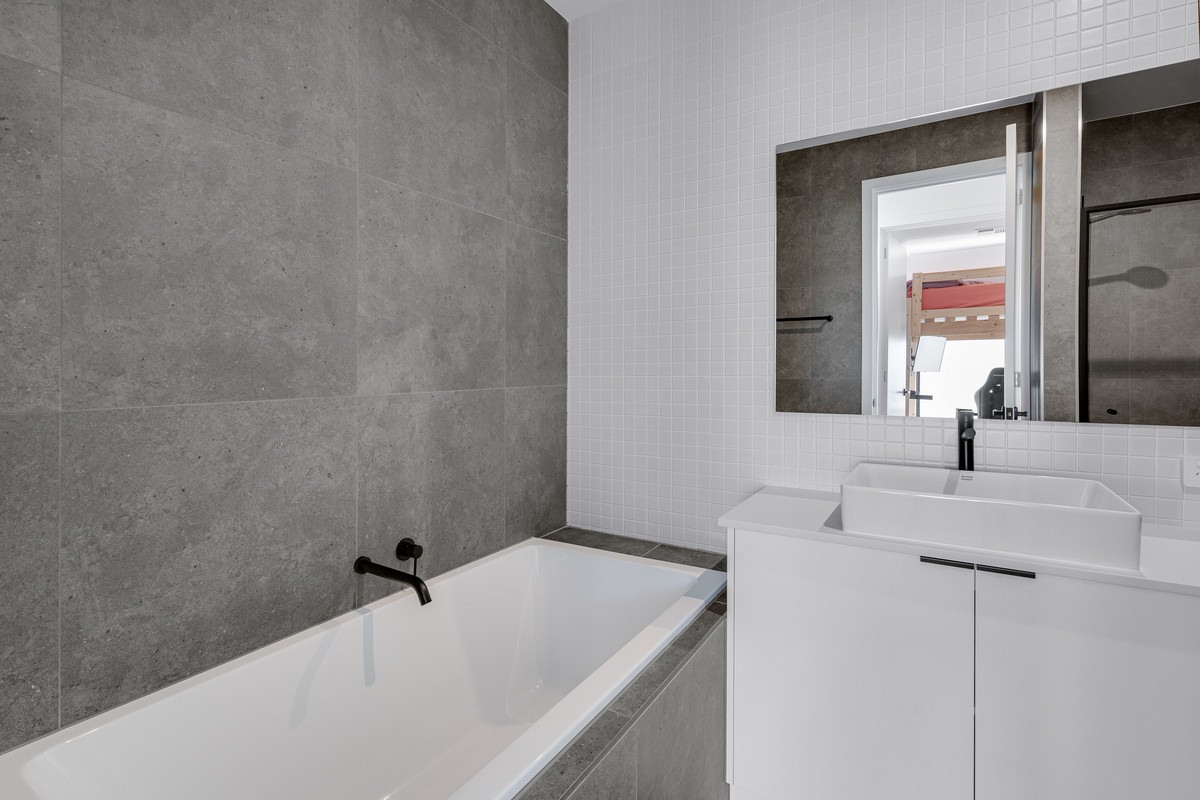 – Stylish bathrooms with floor-to-ceiling tiling, black tap-ware and great storage