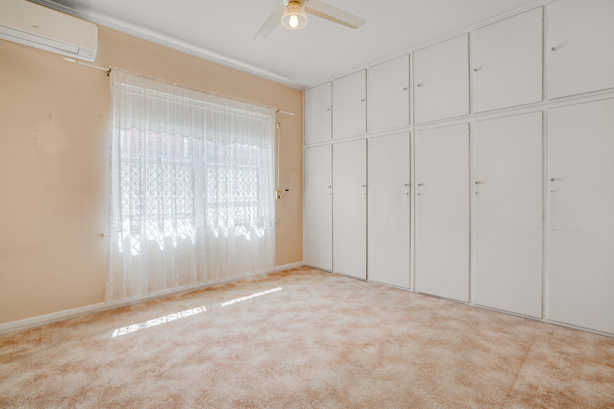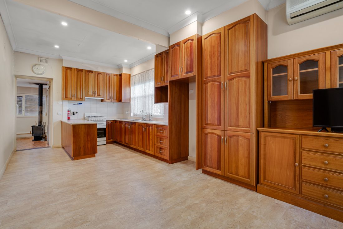 Sliding doors create a seamless and harmonious flow from the lounge room to the dining and kitchen. The kitchen, with its charming wooden cabinetry and abundant counter space, is well-maintained and benefits from a generous window above the sink that fills the area with natural light. Adjacent to the kitchen, you’ll find a spacious meals area, providing ample room for family gatherings. Down lights and a split-system air-conditioner complete the space.