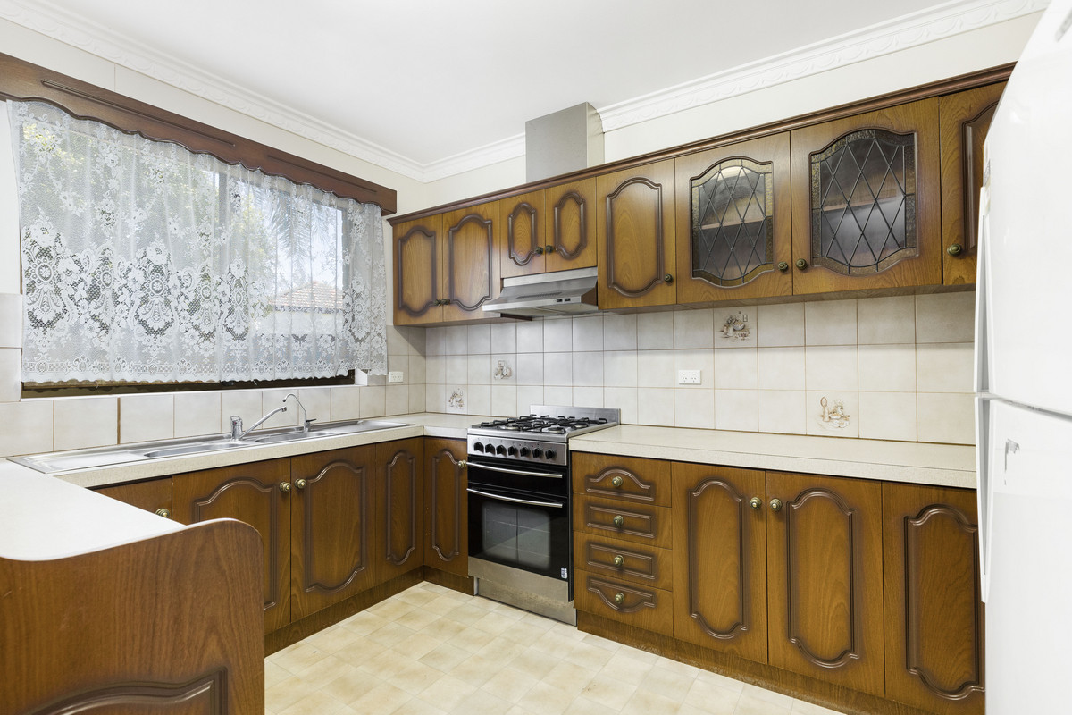 Step into the inviting front lounge, a cosy retreat featuring plush carpeting and a wide window that floods the space with natural light. At the heart of the home, the kitchen and meals area effortlessly blends function and charm with its ample wooden cabinetry, tiled backsplash, and modern stainless steel appliances—including a gas cooktop and oven—making it perfect for family dinners and casual catch-ups.