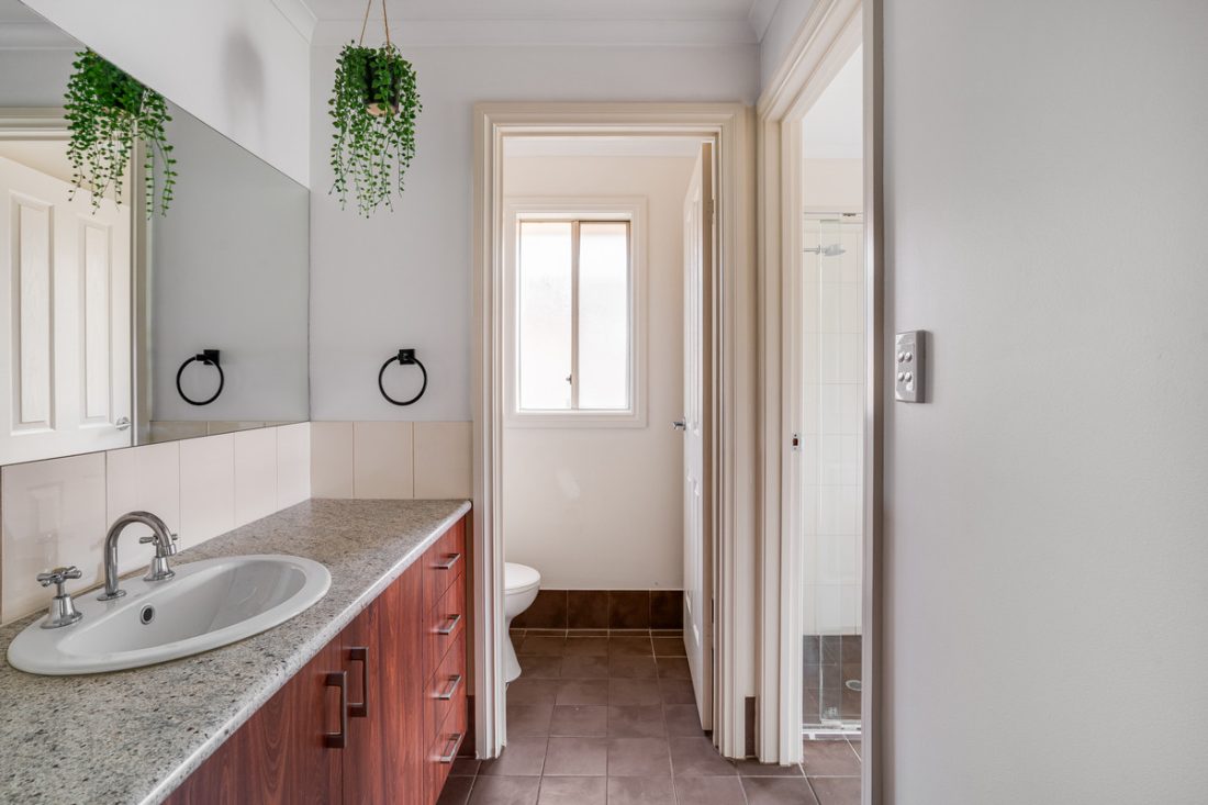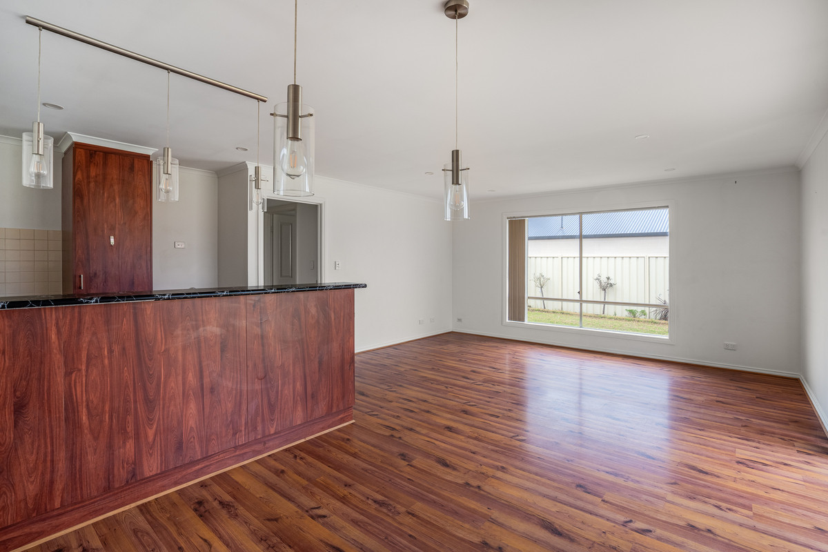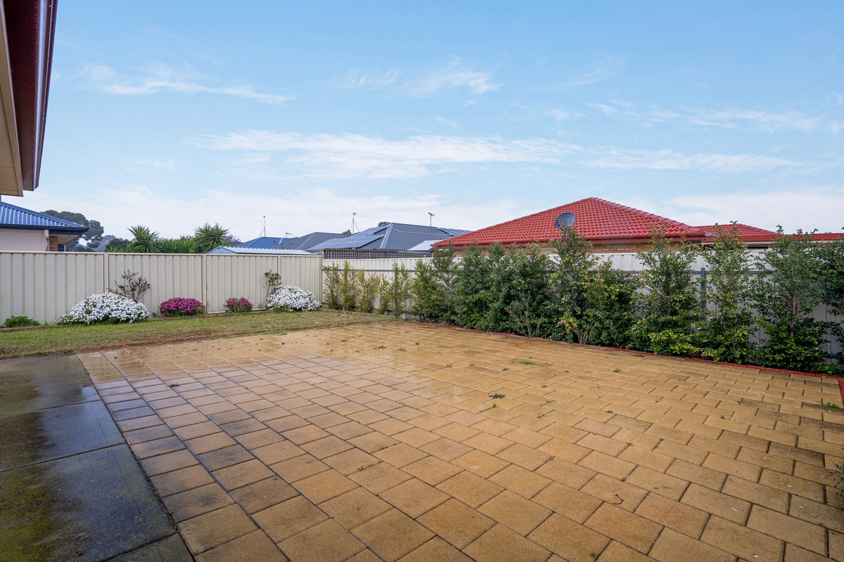 The kitchen is a versatile space, boasting modern finishes and stainless steel appliances. With ample bench space, preparing meals becomes a joyous experience. Sliding doors lead you to the low-maintenance backyard, which offers a generous grassy area for children to play and for entertaining guests.