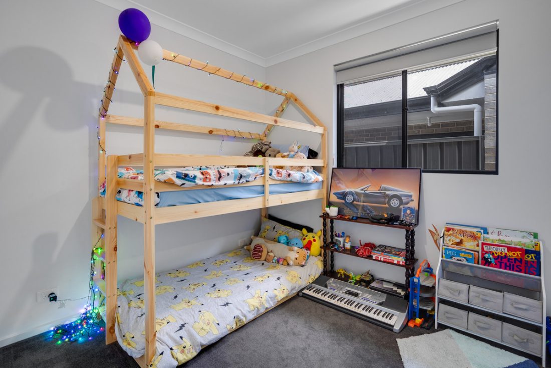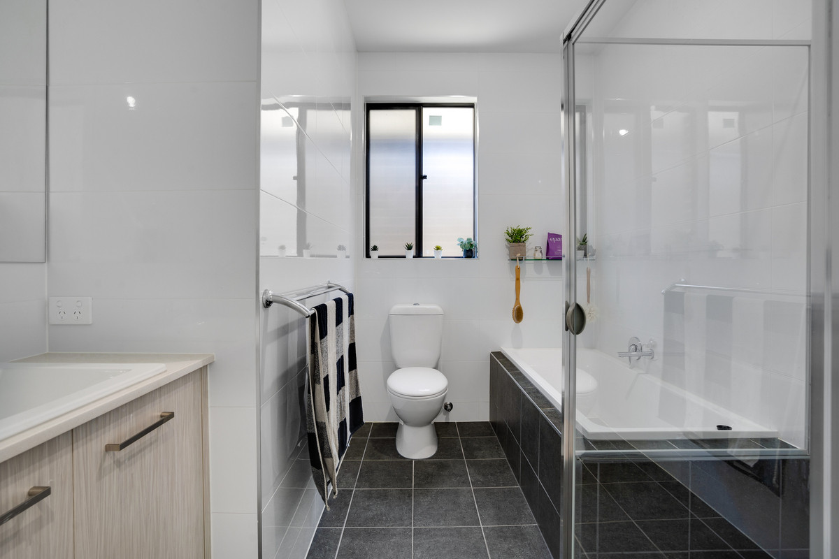 The master bedroom offers a calm ambiance overlooking the rear yard, complete with a large built-in robe and a private ensuite. Two additional bedrooms, each with plush carpeting and built-in robes, provide ample space for family members or guests. The floor to ceiling tiled main bathroom is a haven of relaxation, featuring a large built-in bath and modern fixtures. Outside, the grassed and concreted outdoor area awaits your personal touch, offering the perfect space for outdoor dining or recreation.