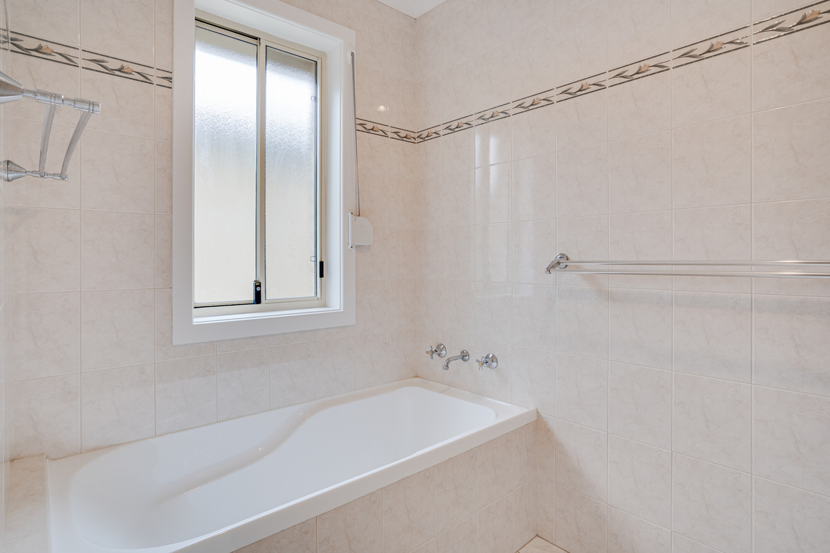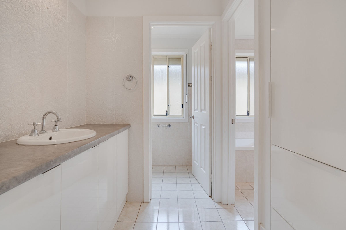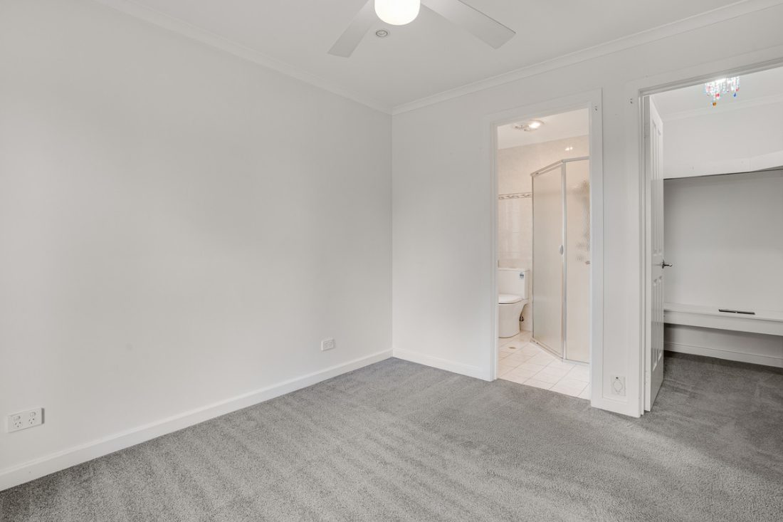 As you continue down the hallway, you’ll find three welcoming bedrooms, boasting plush carpeting and ceiling fans for the utmost comfort. The primary bedroom adds a touch of luxury with a walk-in wardrobe and its very own ensuite bathroom for added privacy and convenience.
