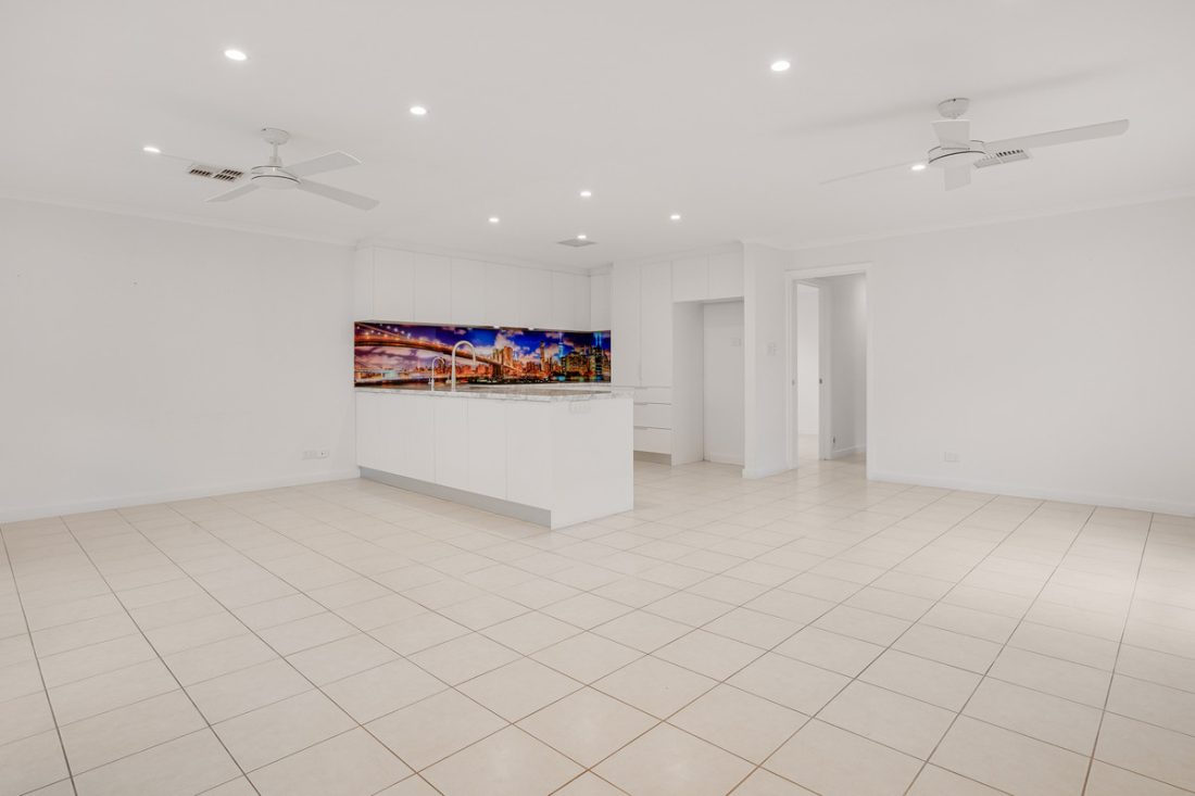 The designer kitchen impresses with its beautiful countertops, a stylish backsplash with LED lights, a top-notch 900mm gas cooktop and oven, a dishwasher, and plenty of storage space. Continuing on, you’ll find the generous combined living and dining areas, a true hub for entertainers. Inviting glass sliding doors encourage you to step outdoors, effortlessly connecting the spaces and leading you to a charming undercover entertaining area.