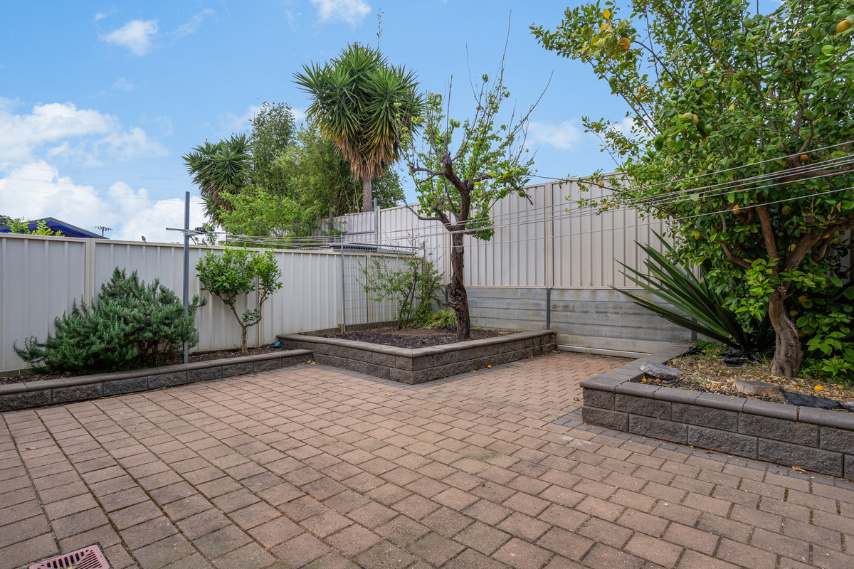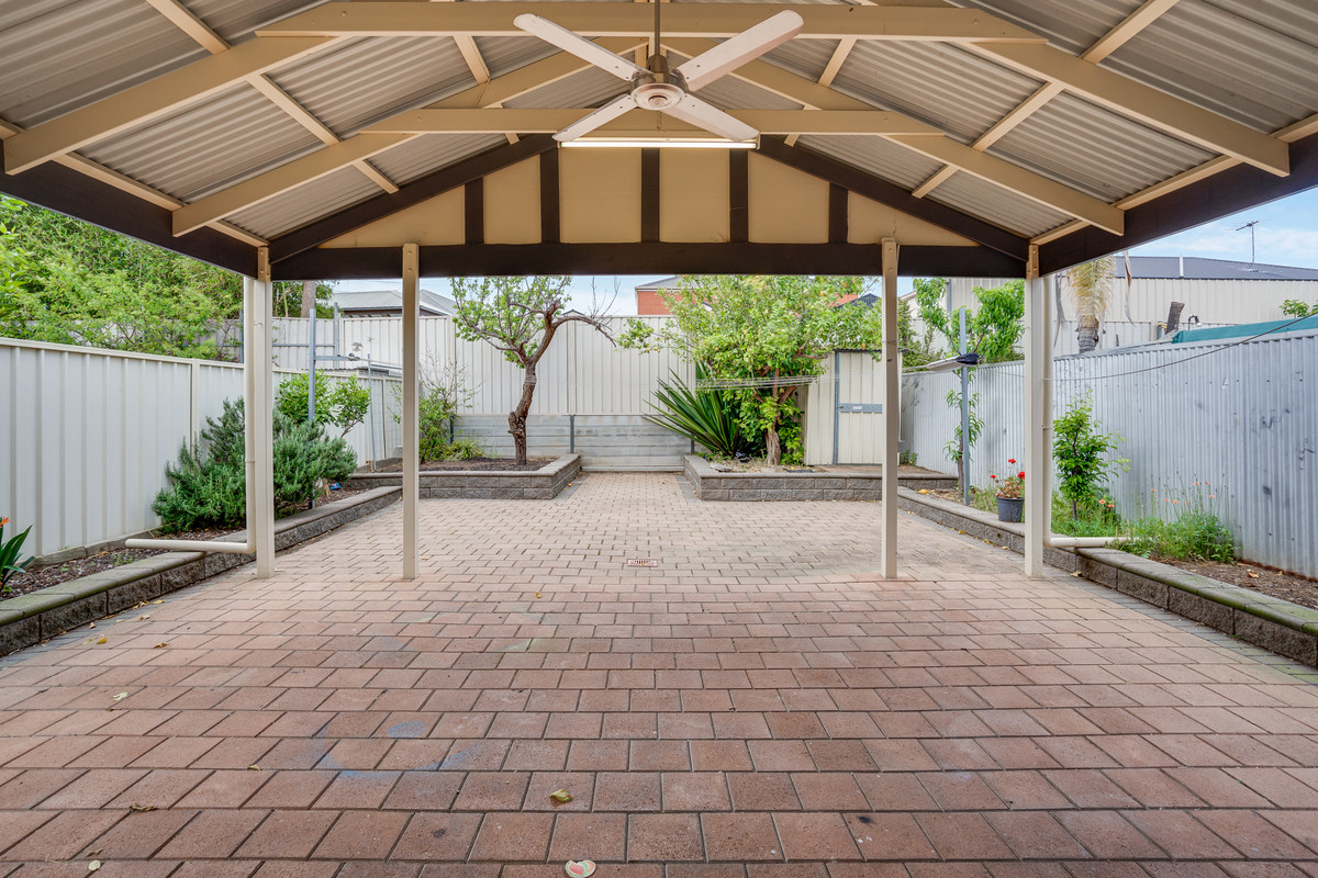 The covered verandah, complete with a ceiling fan for year-round comfort, is your ideal spot for hosting BBQs and gatherings. Following this space is a low-maintenance, fully paved yard, adorned with charmingly landscaped surroundings and an abundance of fruit trees along the border. It’s the perfect, tranquil setting for relaxation, entertaining, and soaking up the sun’s warmth.
