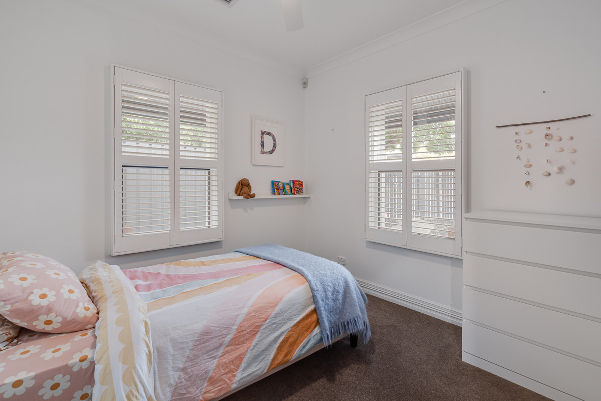 Three additional bedrooms offer comfort and style, each with plush carpeting and ceiling fans. The second bedroom includes wall-to-wall built-in robes, maximising storage space. These bedrooms are serviced by a newly renovated main bathroom that mirrors the high quality finishes of the ensuite, maintaining a luxurious look throughout the home.