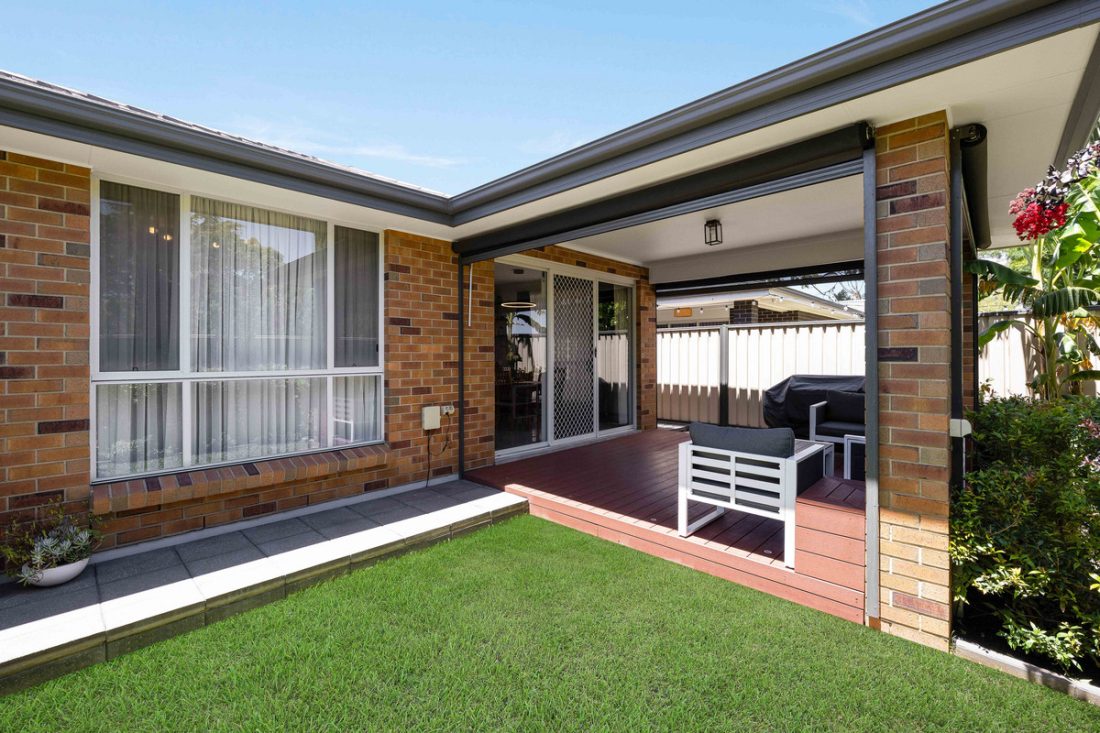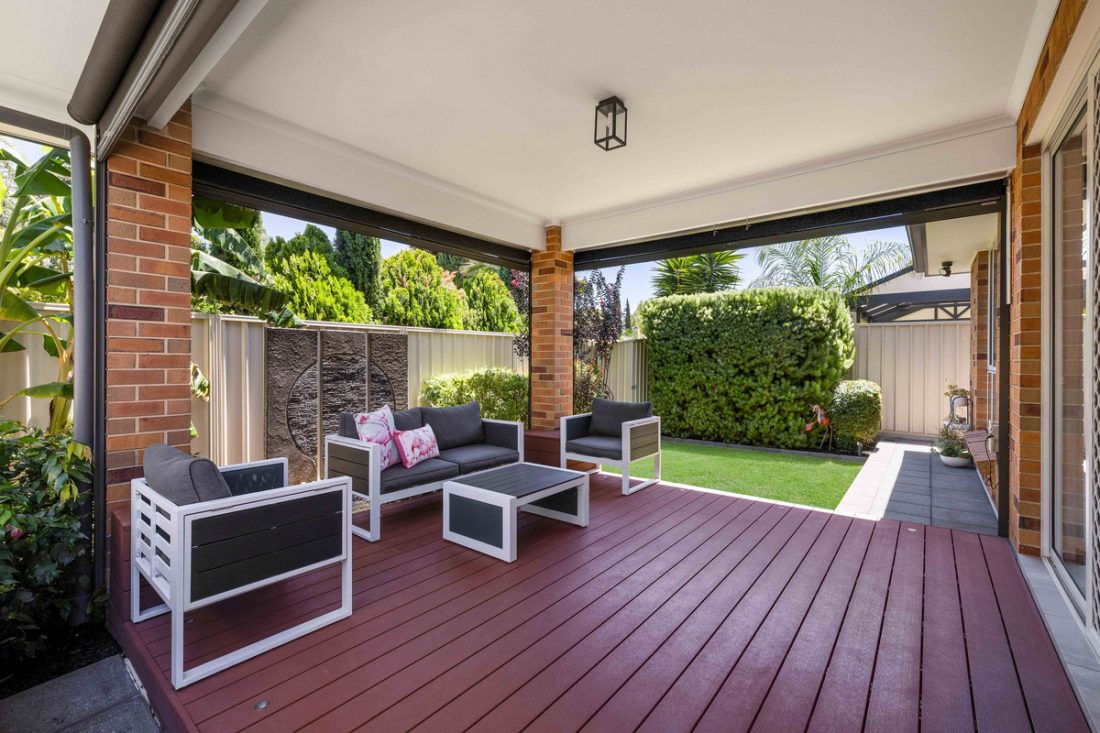 – Alfresco undercover decked entertaining area with outdoor blinds, ideal for easy hosting