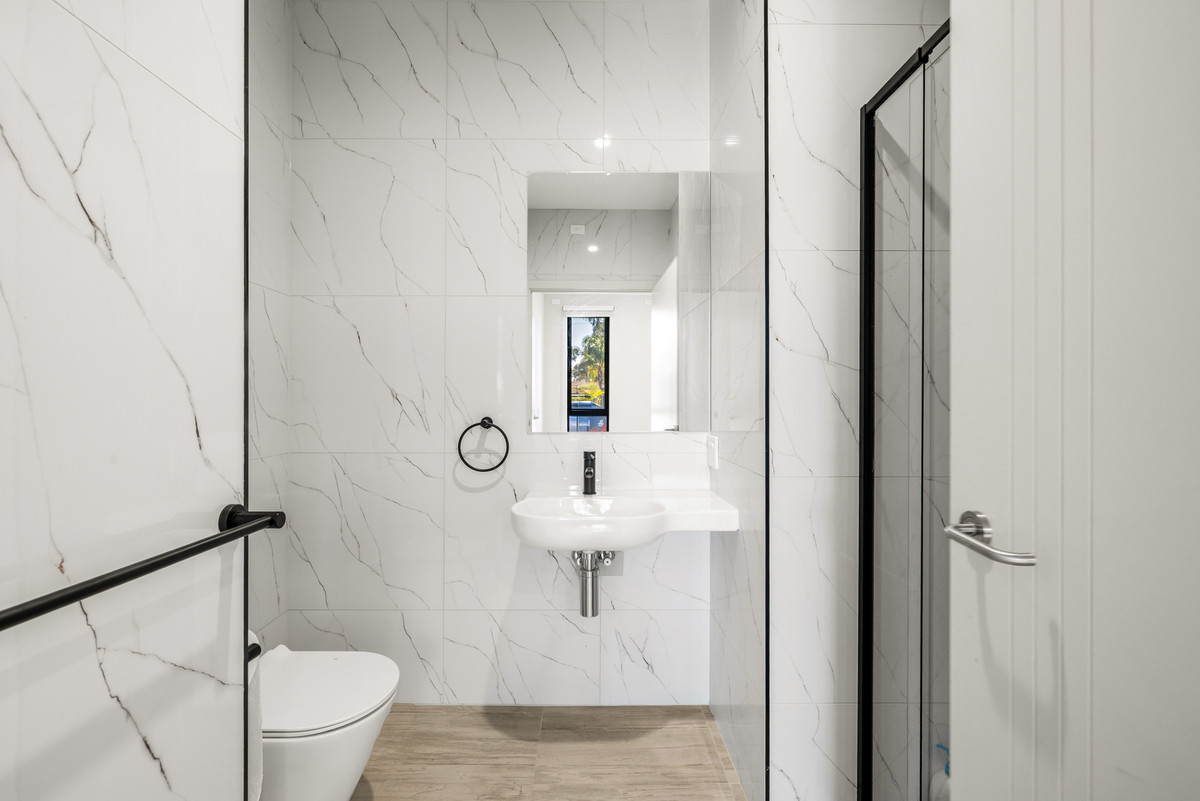 The home provides four bedrooms, each fitted with built-in robes and their own private ensuite bathrooms. Three of these bedrooms feature ensuites designed for accessibility, featuring open showers and generous space for support equipment. A dedicated carer’s bedroom with ensuite ensures comfortable quarters to support 24/7 care for residents.