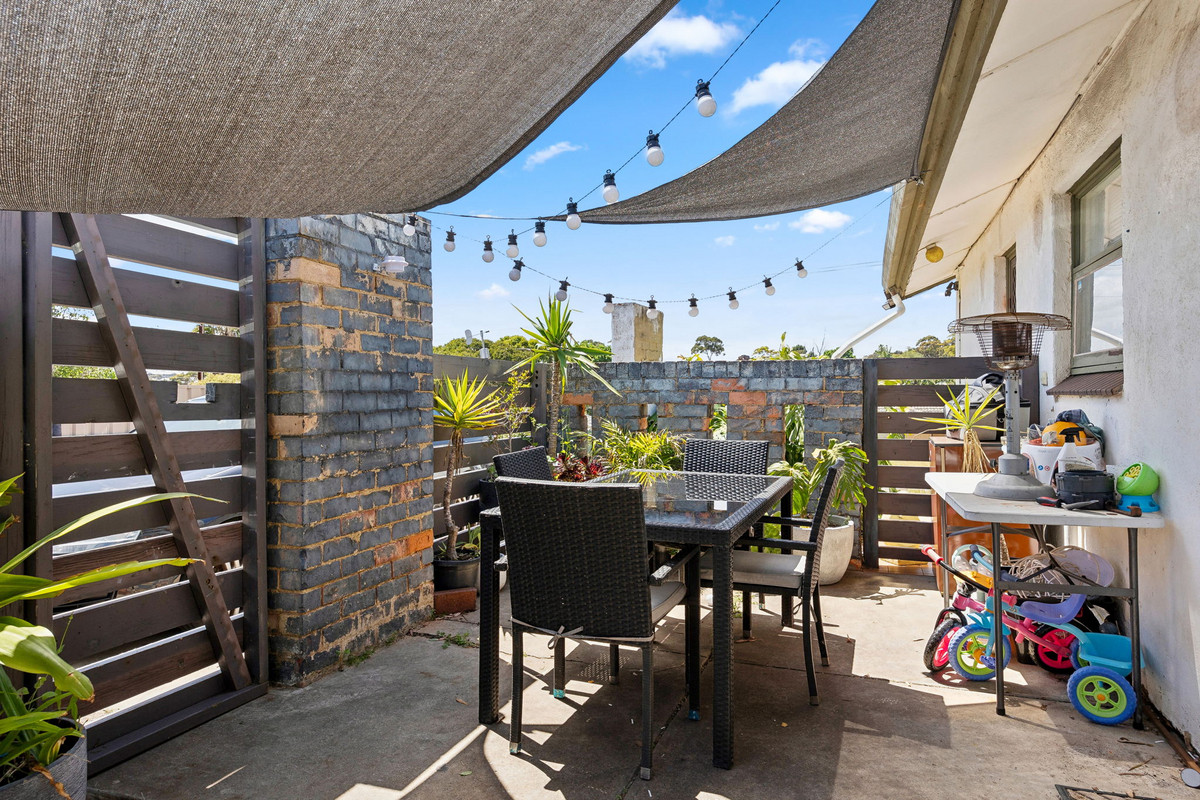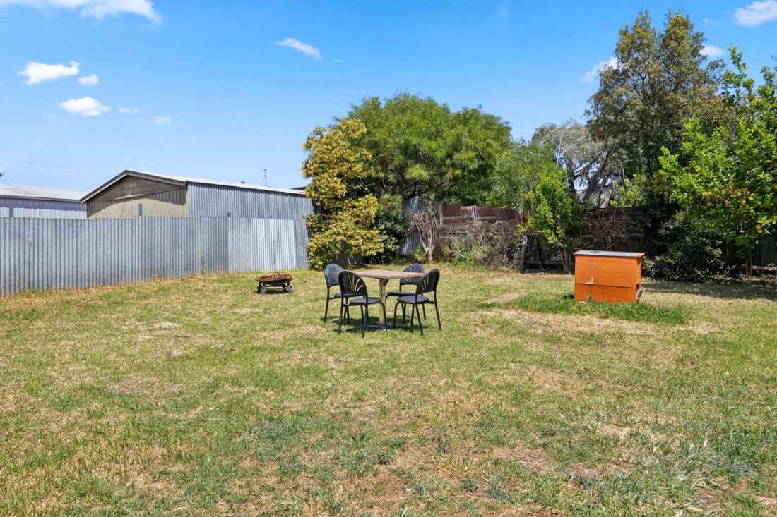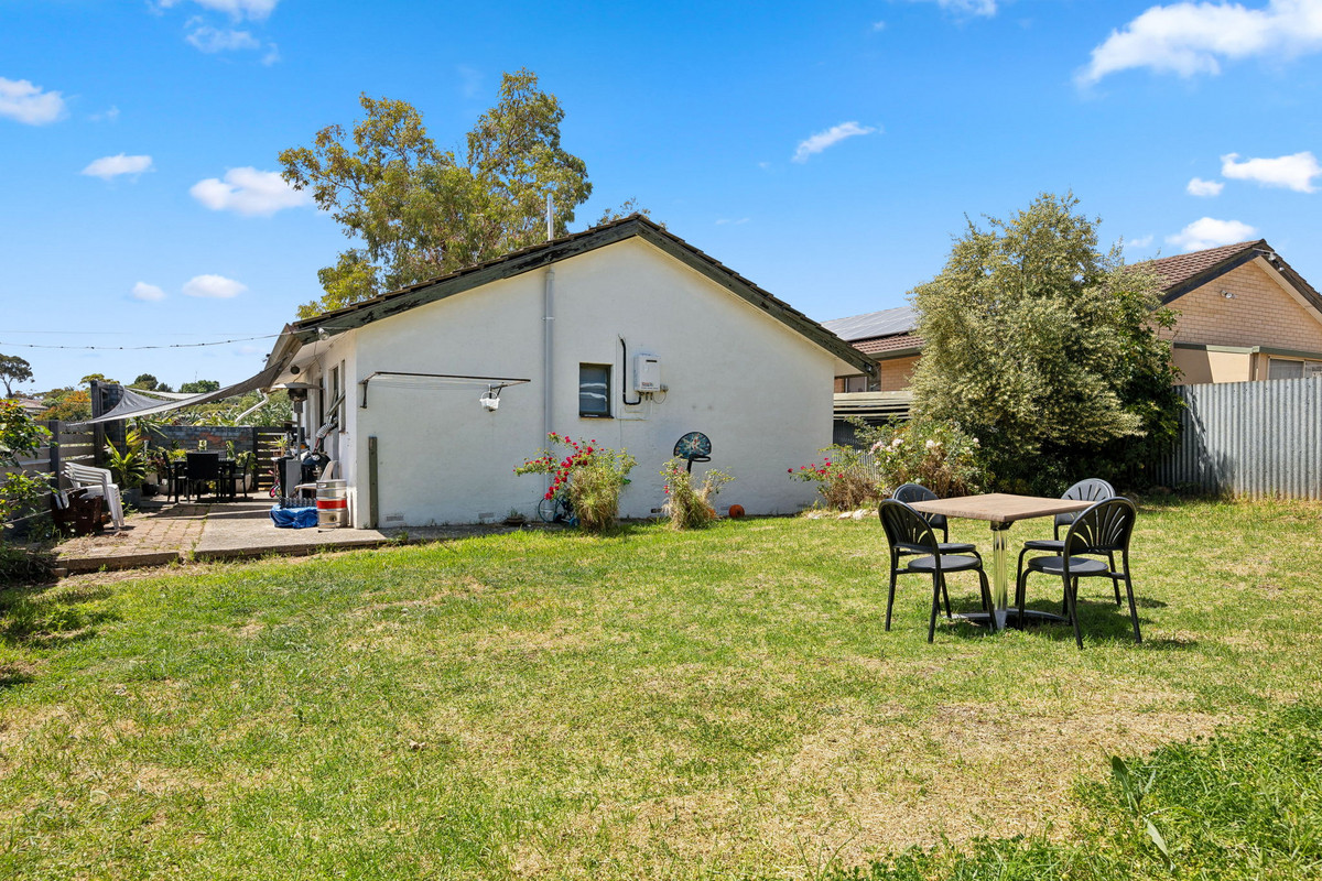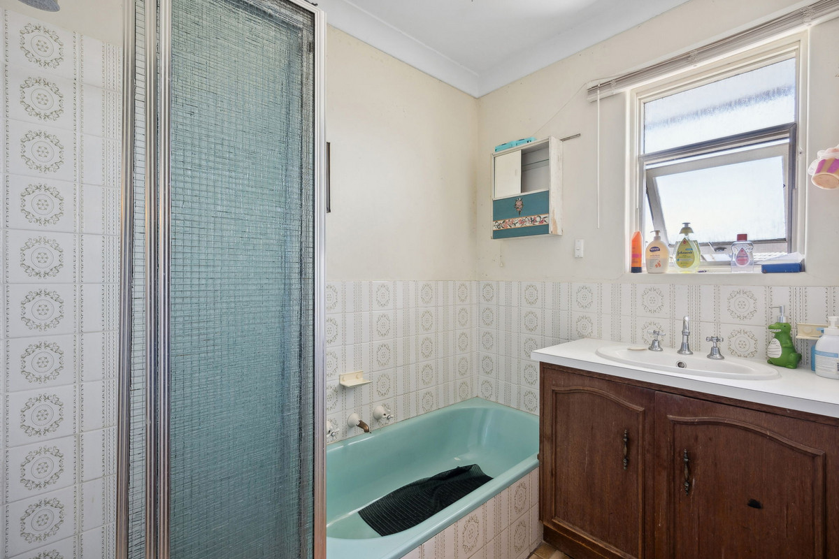 Each of the three comfortable bedrooms is filled with natural light, with hardwood floors adding a touch of warmth. The master bedroom includes a built-in robe for added convenience. Servicing the home is a spacious bathroom with vintage tiles, a shower, a built-in bath, and a vanity with plenty of storage.