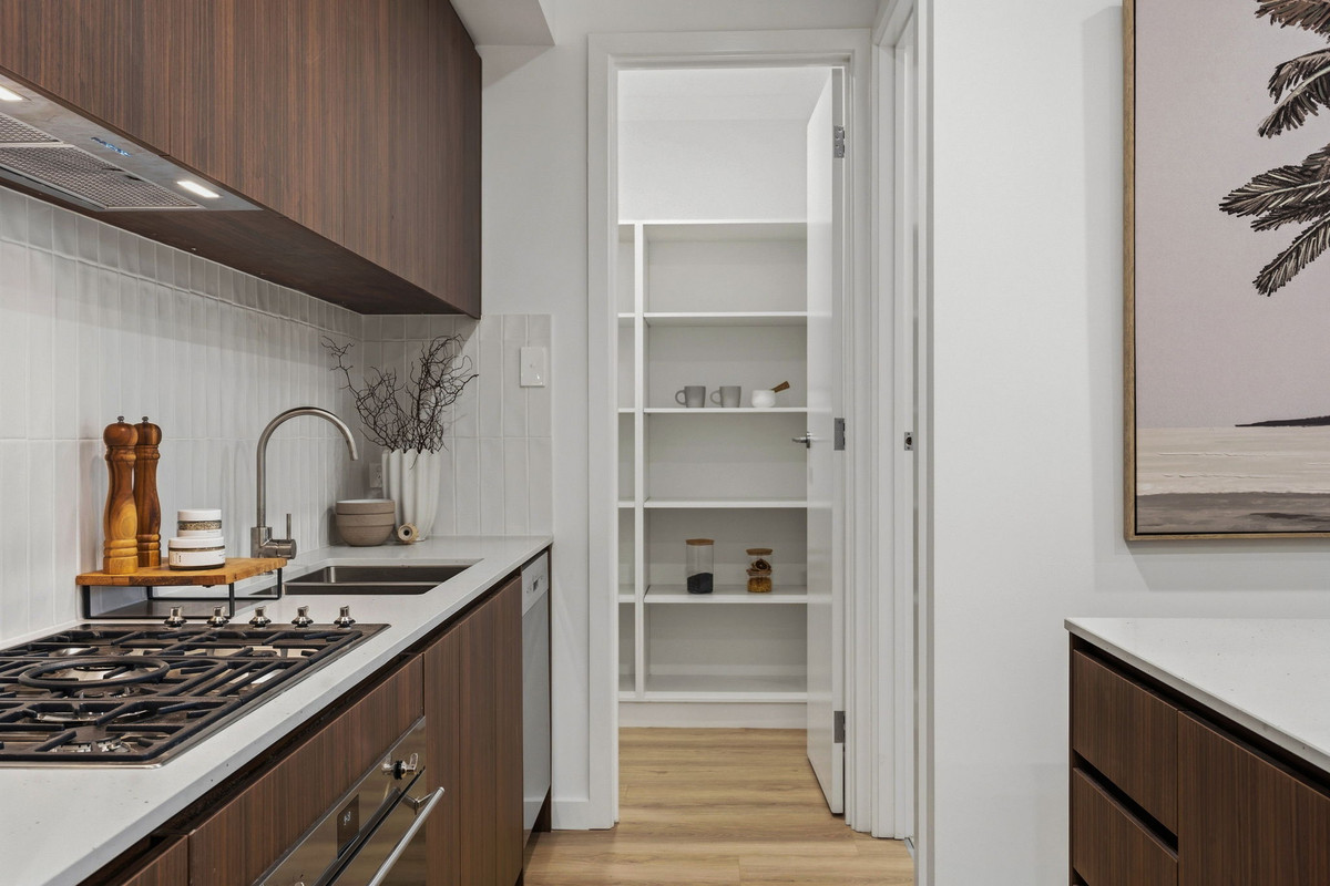 — Stylish kitchen with walnut joinery, walk-in pantry and quality appliances