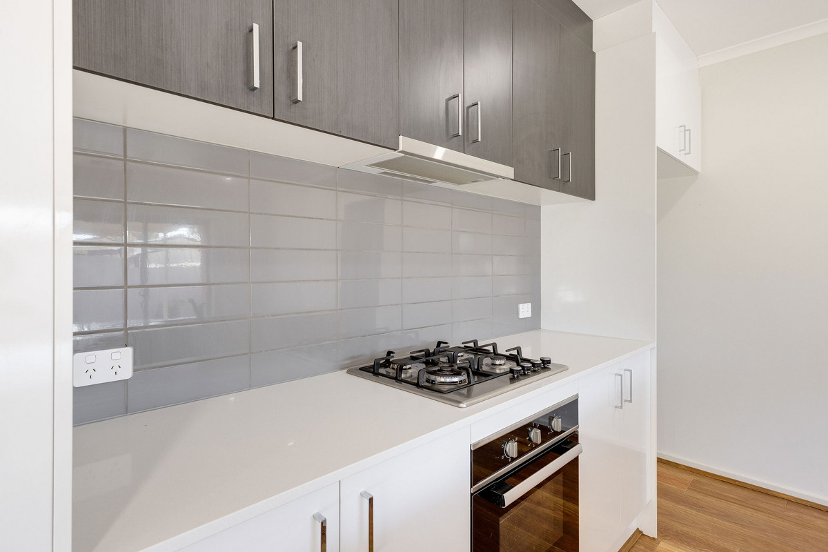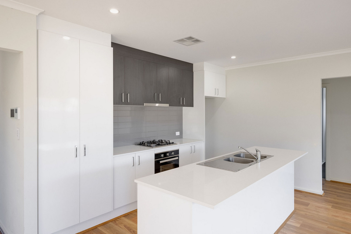As you arrive, the contemporary bricked facade sets the tone for the interior that awaits. Inside, follow the hallway that guides you to the heart of this residence. Here, the open-plan kitchen, living, and dining areas combine, forming an open and welcoming space. The pristine kitchen features modern white cabinetry, a large island bench and stainless steel appliances including a gas cook-top and dishwasher.