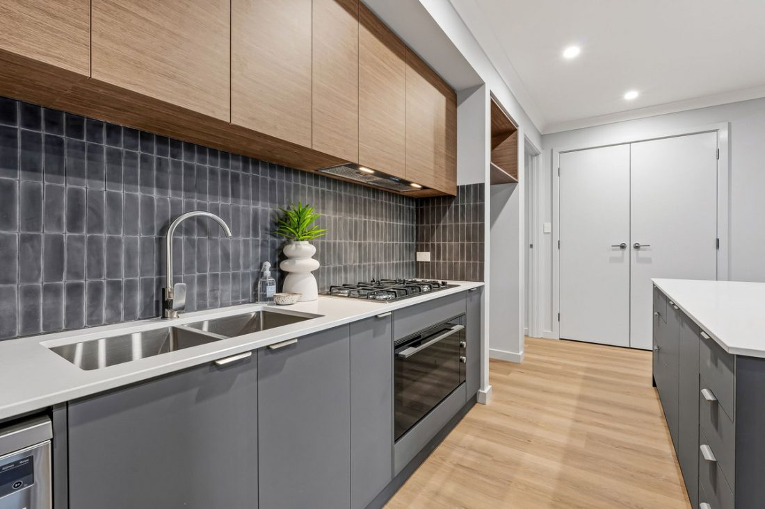 Inside, the layout opens up to a light-filled heart of the home that instantly feels fresh and welcoming. The kitchen is a true crowd-pleaser, featuring stone benchtops, moody two-toned cabinetry, an undermounted double sink, stainless steel appliances including a gas cooktop and dishwasher, plus a walk-in pantry. A generous island bench with space for stools makes it perfect for morning coffees, casual meals or catching up while dinner is on.