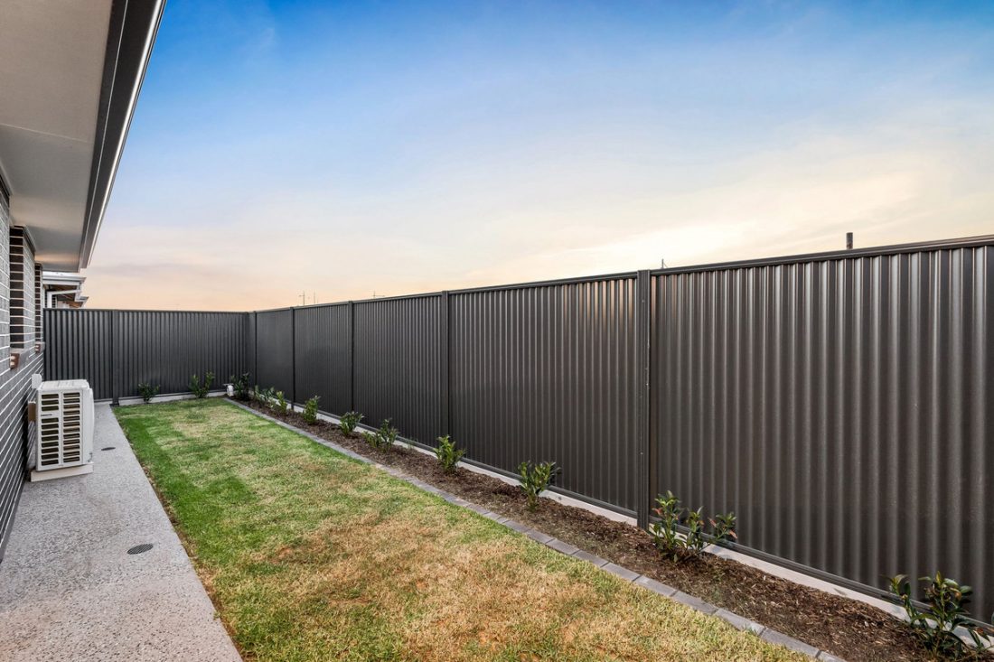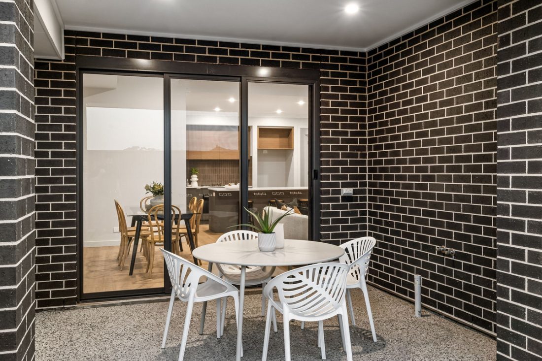 – Undercover alfresco overlooking neat lawn and low-maintenance landscaping