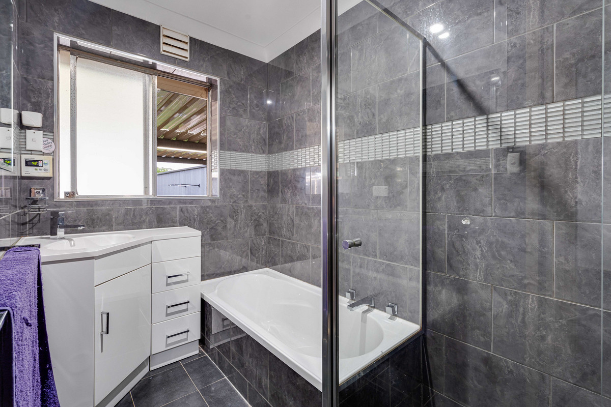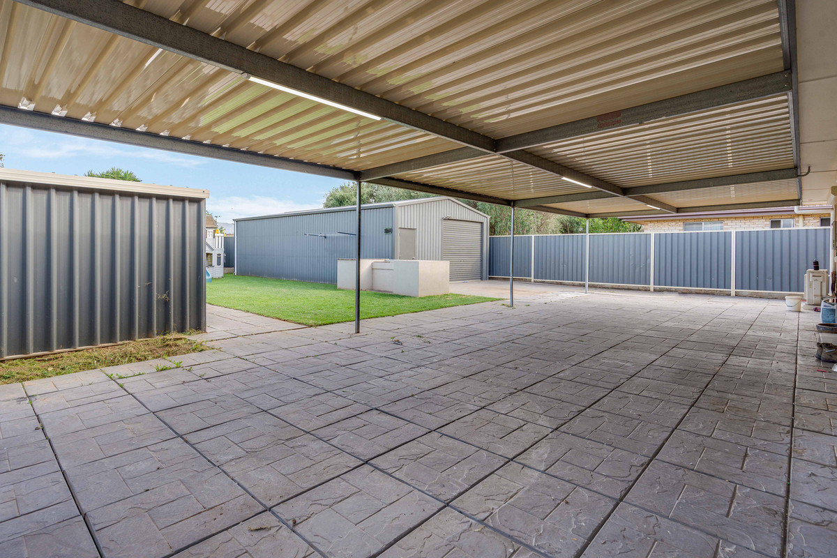 Outside, the expansive backyard truly shines, offering endless potential for entertainment and relaxation. A large veranda sets the stage for gatherings, while the sprawling lawn provides ample space for outdoor activities. As a bonus, the shed is great for storage or a place to securely park your cars.