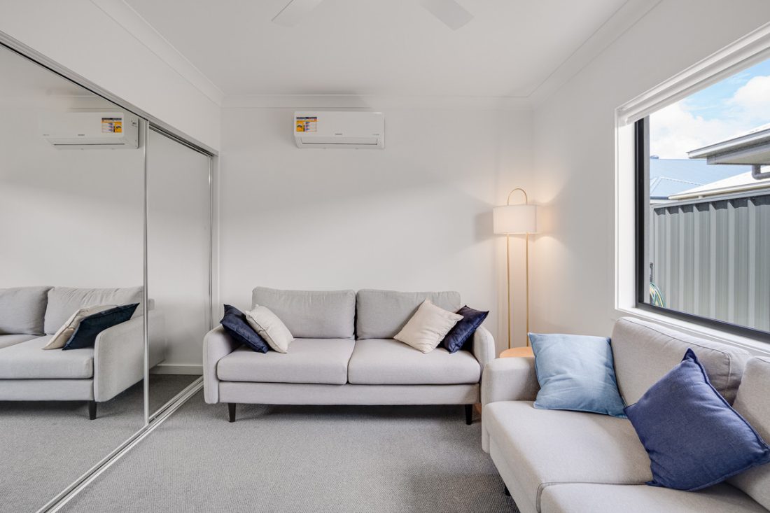 Delight in year-round entertainment within your preferred setting. During the colder seasons, unwind in the cozy media room, complete with plush carpeting, split system air conditioning, and a ceiling fan. When the weather warms up, enjoy pleasant evenings under the inviting alfresco space, offering a view of the meticulously tended lawn area. It’s an ideal setting for the entire family to savor and make lasting memories.