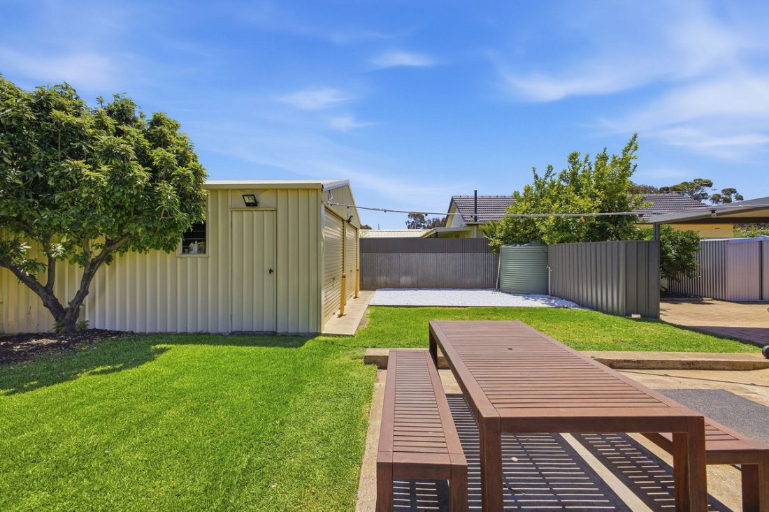 Toward the rear, a sunroom and separate studio open up options for creativity, hobbies or an additional retreat. Two front doors add a touch of quirk, while a double car shed with inbuilt cabinetry and a handy tool shed ensure storage is never an issue. Outdoors, the garden is its own little orchard, flourishing with Granny Smith apples, pears, avocado, citrus, macadamia, apricot, quince, grapes, asparagus and passionfruit vines. Whether you’re harvesting fruit, pottering in the garden or simply unwinding in the sunshine, this is a backyard with heart.