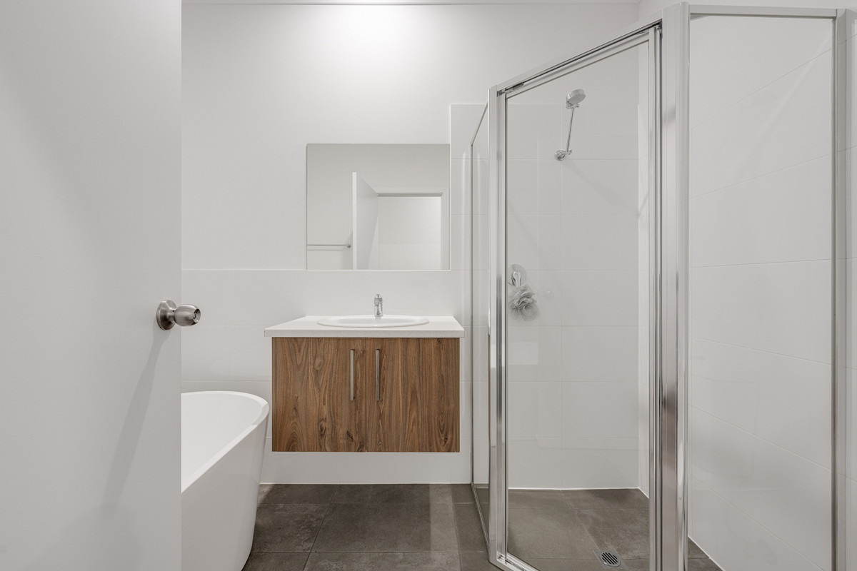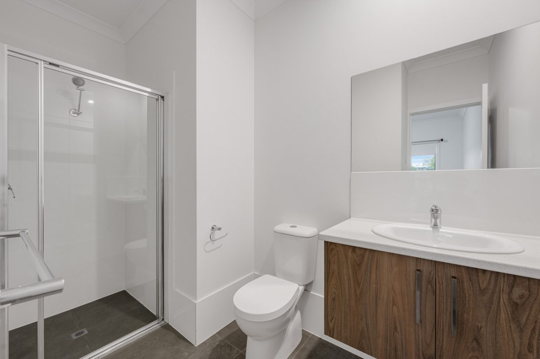 The master bedroom offers serene street views, its own private ensuite, and a built-in robe for added convenience. Two additional bedrooms also feature built-in robes, while the centrally located main bathroom echoes the same quality and style as the ensuite, creating a seamless and cohesive feel throughout the home.