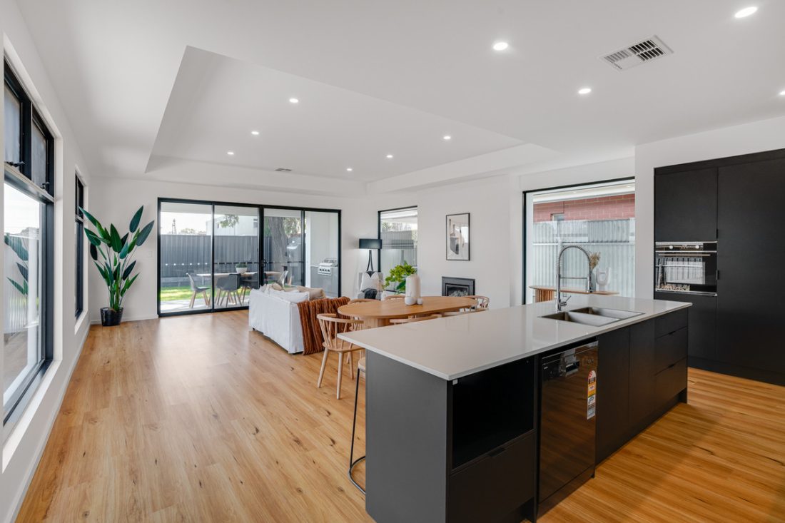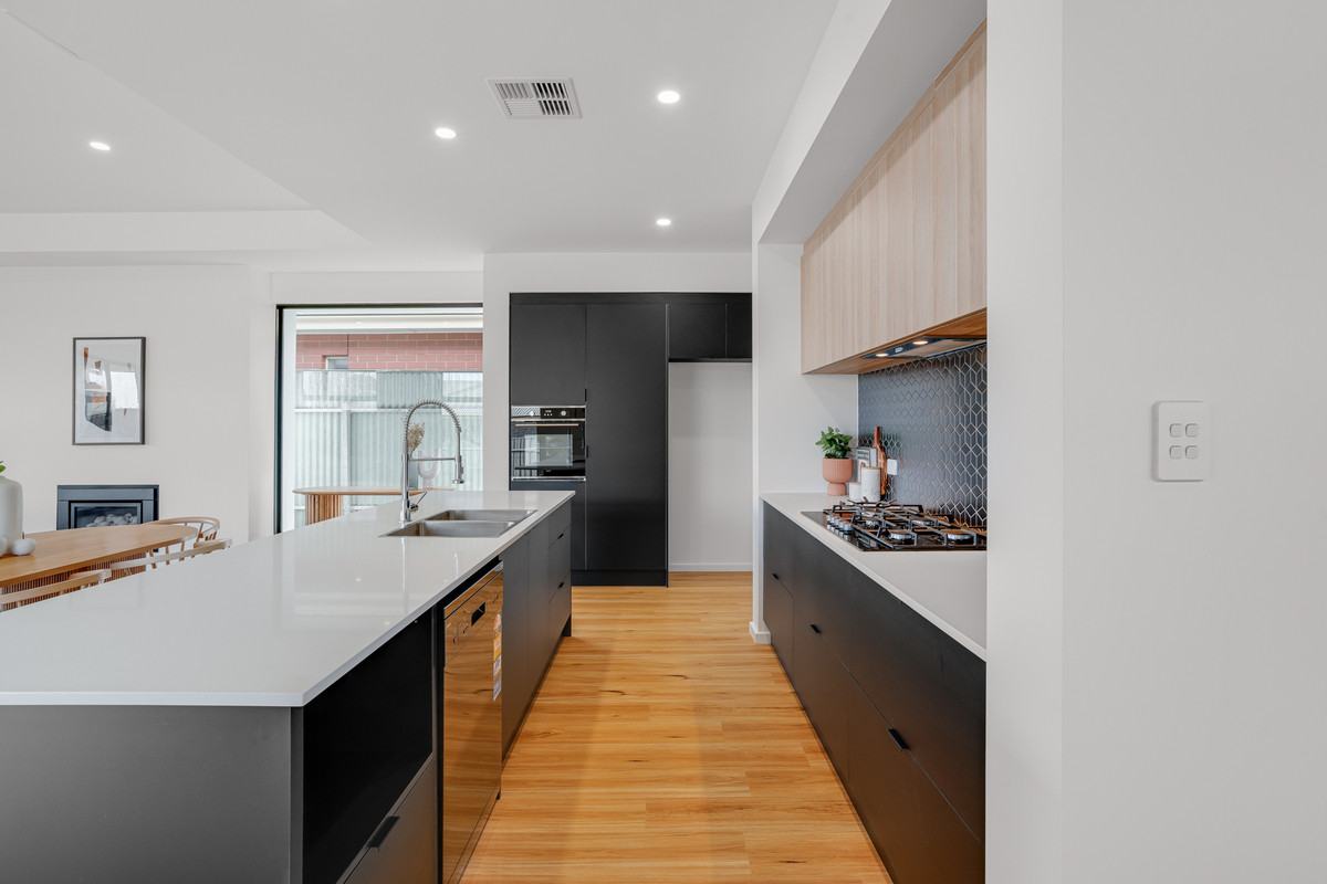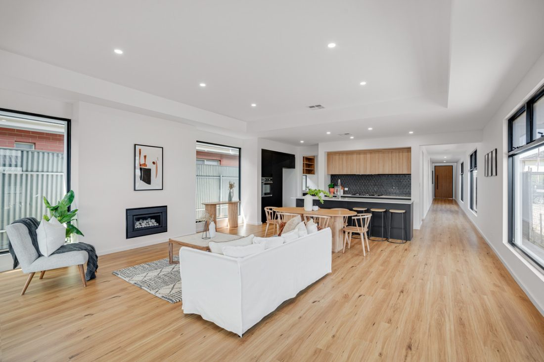 Step inside and follow the elongated hallway to the heart of the home, where the open-plan kitchen, living and dining areas seamlessly connect to create a truly impressive space. A stylish timber look floating floor spans the ground floor of this clever layout. Designed with your lifestyle in mind, this area offers plenty of room for you to relax and entertain in style.