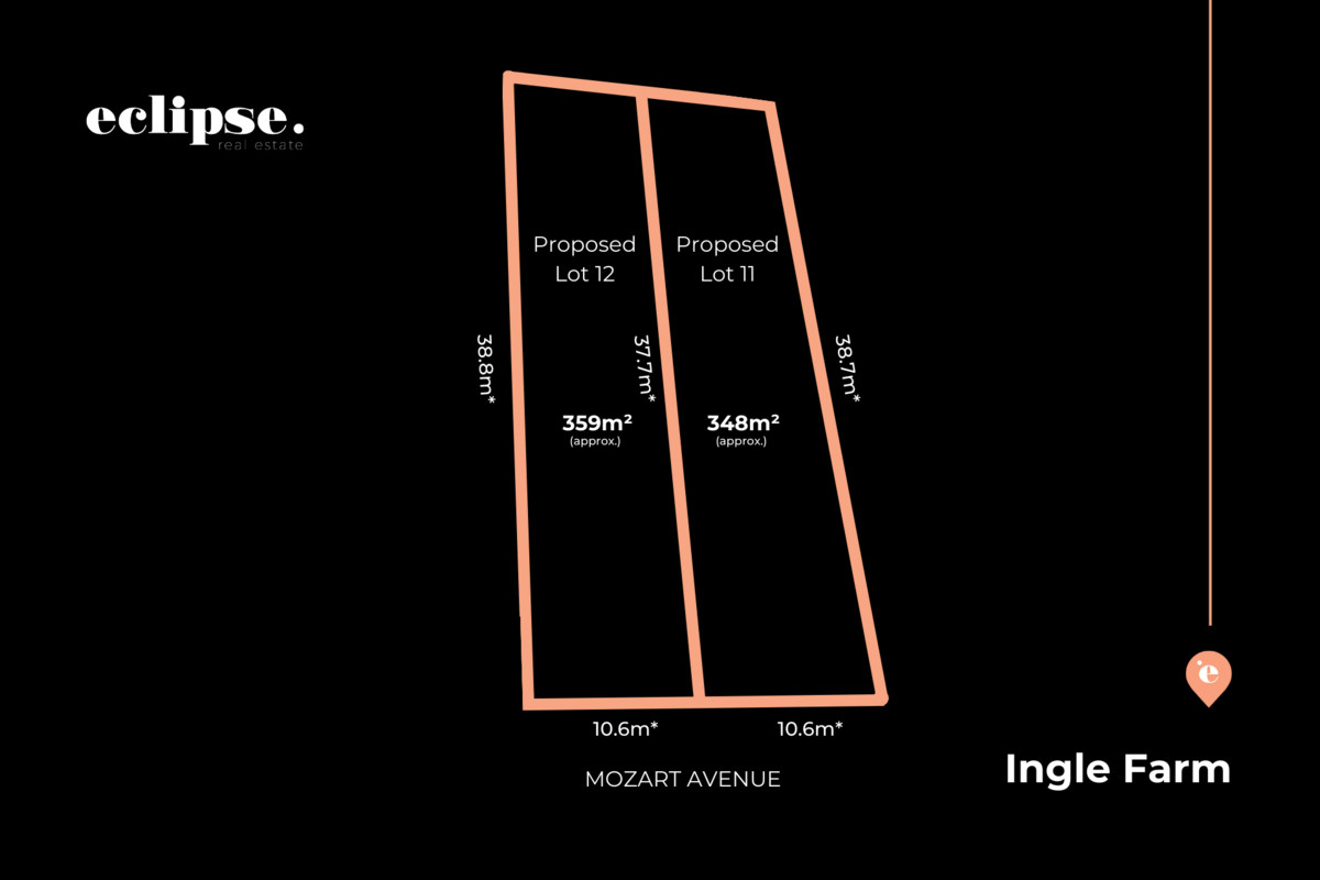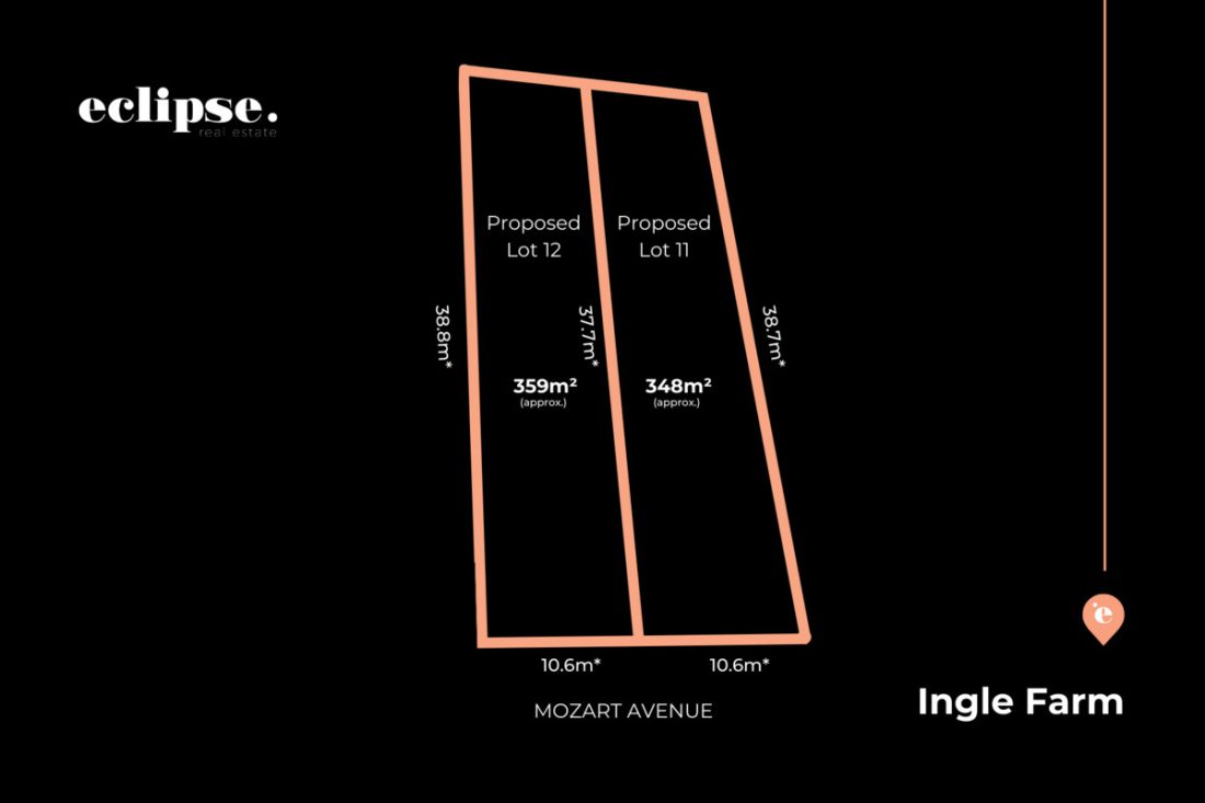 Proposed Lot 12 is 359 sqm* with a 10.6 metre* frontage.
