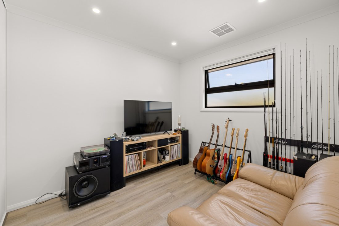 Head upstairs and you’ll find the remaining bedrooms, each fitted with built-in robes and serviced by a beautifully finished main bathroom with floor-to-ceiling tiling and another freestanding bath. A large upstairs family room opens onto a balcony, creating a second living zone where everyone can spread out or sneak away for some quiet time.