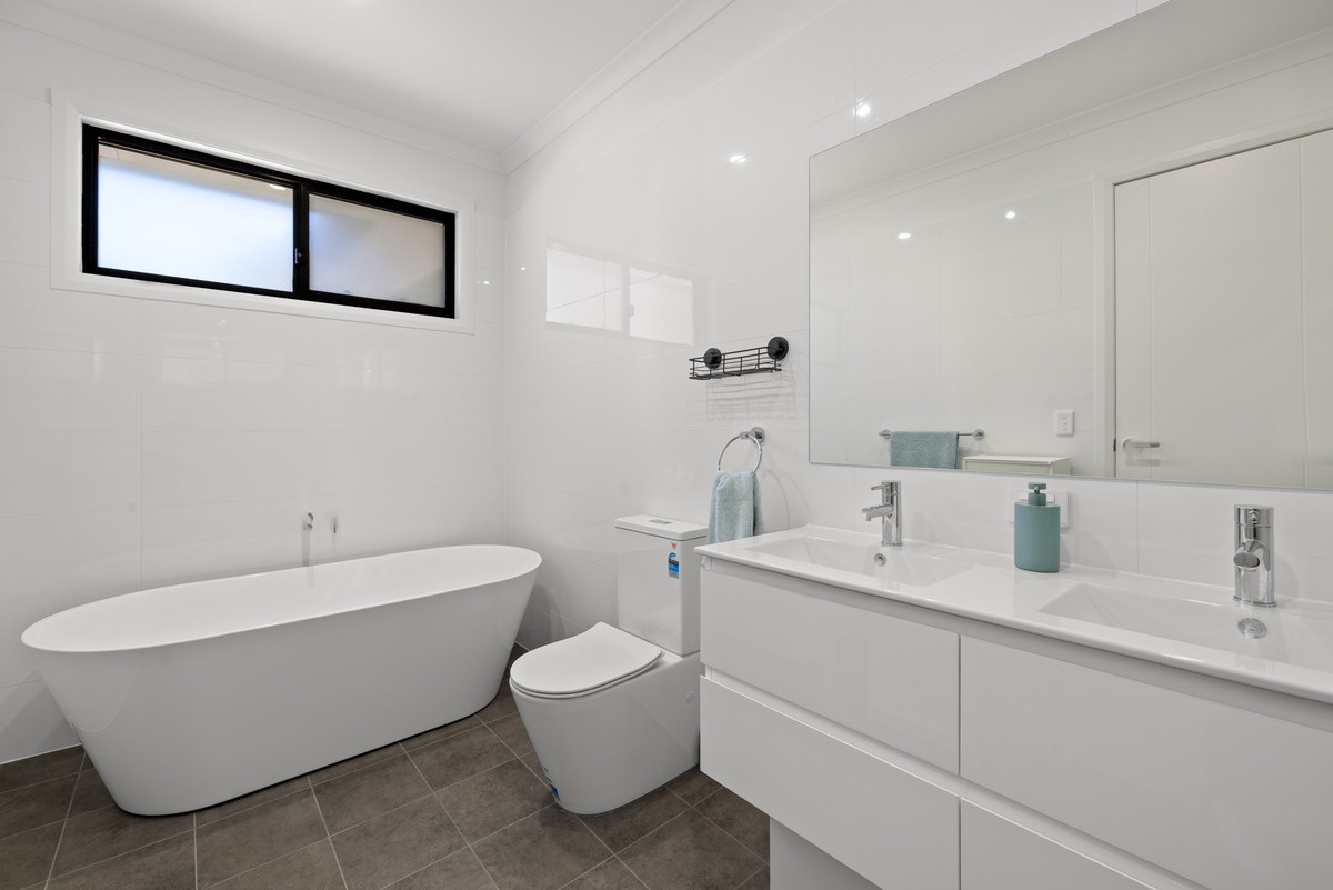 Head upstairs and you’ll find the remaining bedrooms, each fitted with built-in robes and serviced by a beautifully finished main bathroom with floor-to-ceiling tiling and another freestanding bath. A large upstairs family room opens onto a balcony, creating a second living zone where everyone can spread out or sneak away for some quiet time.