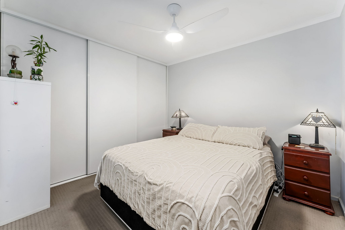 Two spacious bedrooms offer comfort and functionality, each fitted with built-in robes and ceiling fans. One of the bedrooms enjoys direct access to a private balcony – a perfect spot for a morning coffee or quiet escape.