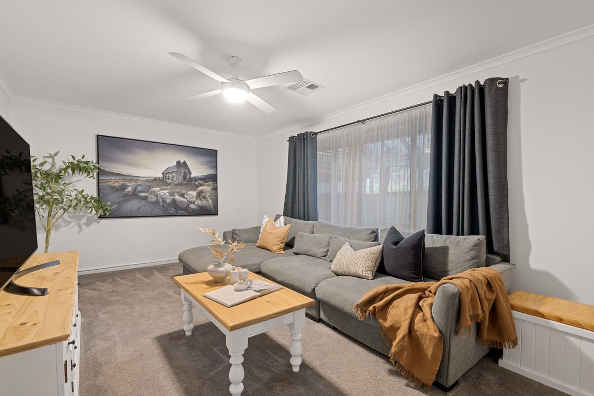 A secondary lounge sits just off the dining area, carpeted for comfort with a ceiling fan and large window inviting in natural light. Whether it’s a movie night, kids’ retreat or quiet escape, this extra living space gives you options.