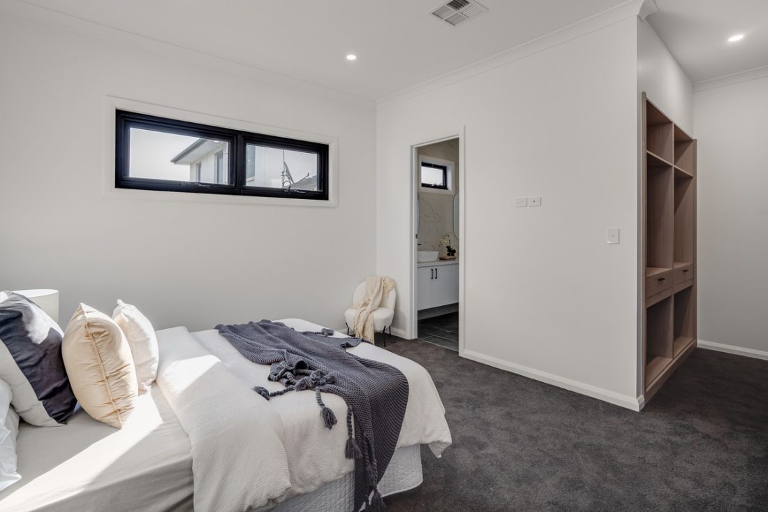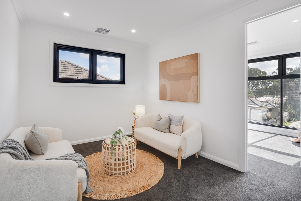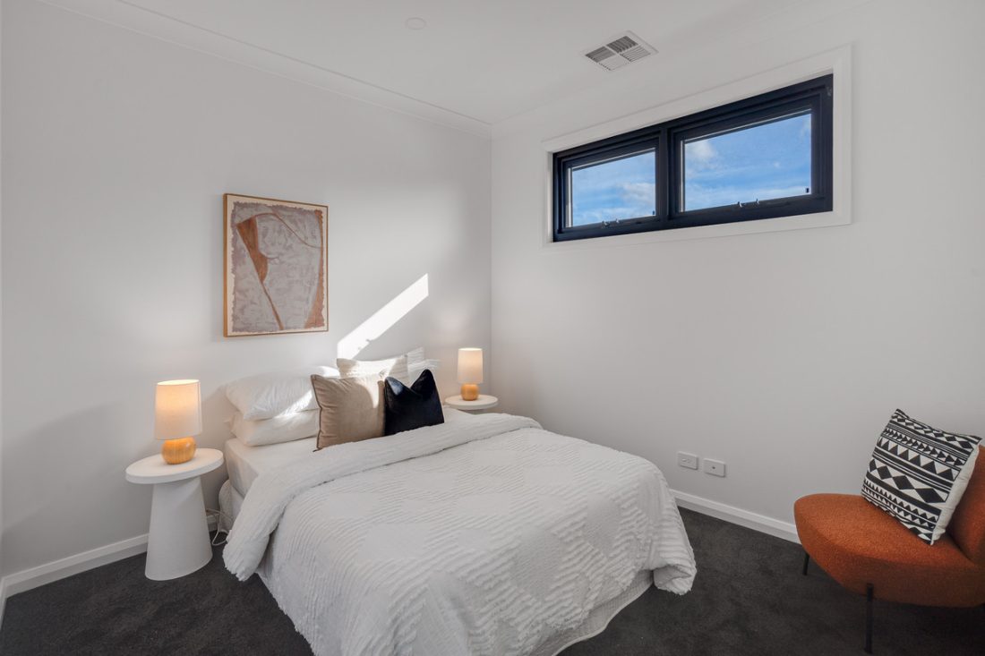 Head upstairs and discover three bedrooms, each generous in size and adorned with luxurious plush carpeting. A secondary primary bedroom awaits, complete with an ensuite and walk-in wardrobe, while the remaining two bedrooms will feature built-in wardrobes. An additional living area upstairs offers a versatile space for family enjoyment.