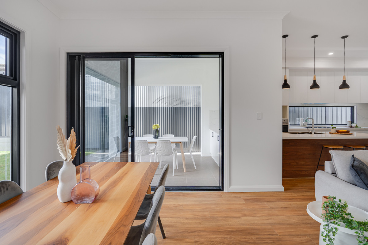 Towards the rear of the house, an open-plan kitchen, living, and meals area awaits. The beautifully designed kitchen boasts stone benchtops and premium Smeg appliances, including a 900mm gas cooktop and dishwasher. Step through glass sliding doors to seamlessly connect to the outdoor entertaining area, creating a harmonious blend of indoor and outdoor living.