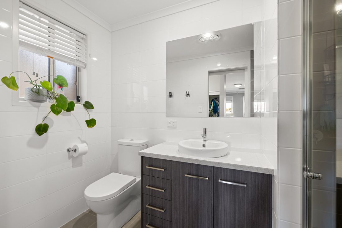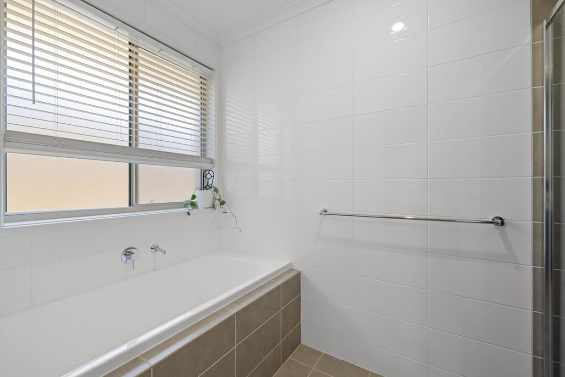 The master suite is a true retreat with a walk-in robe and ensuite, while the additional bedrooms, each fitted with built-in robes, are serviced by a stylish bathroom featuring a bathtub, shower, and separate toilet for family convenience.
