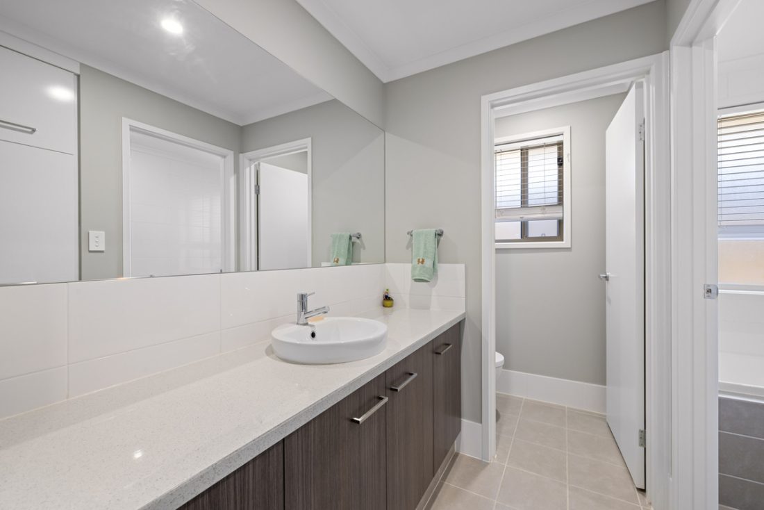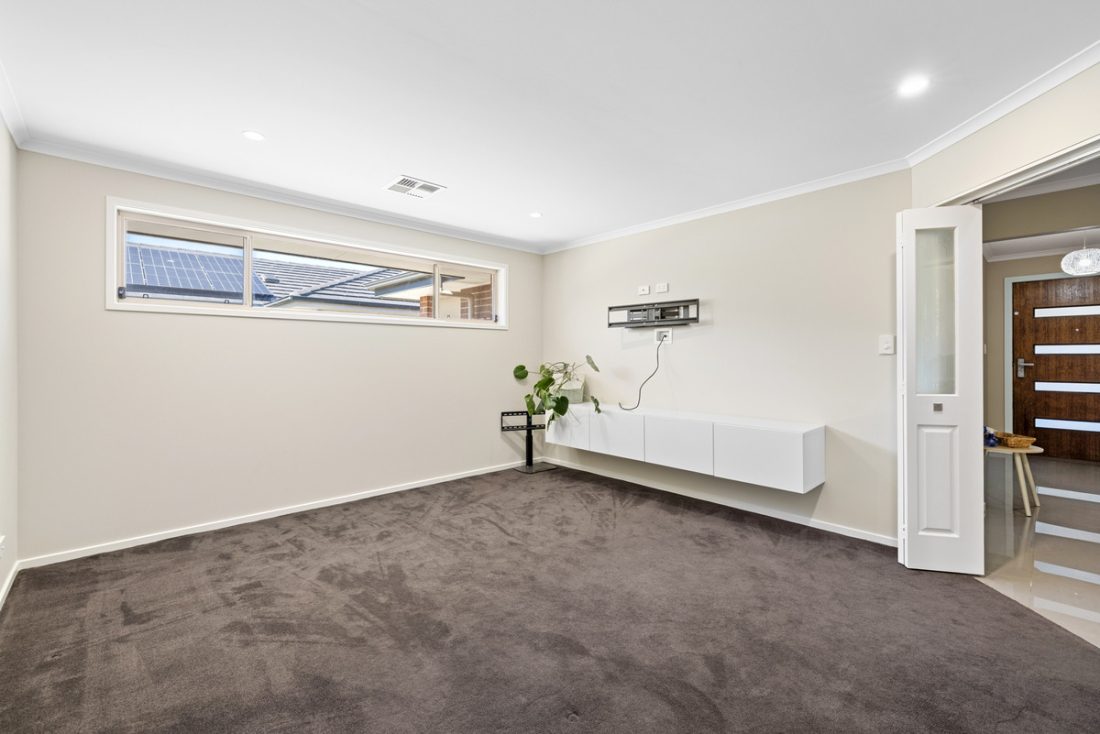 At the heart of the home, the expansive open-plan kitchen, dining, and living zone sets the stage for effortless living. Glossy tiled floors, downlights, and natural light create a welcoming backdrop, while the kitchen shines with its island bench, walk-in pantry, stainless steel appliances, and gas cooking. A second living room offers flexibility as an additional lounge, fourth bedroom, or home office – ready to adapt as your needs evolve.