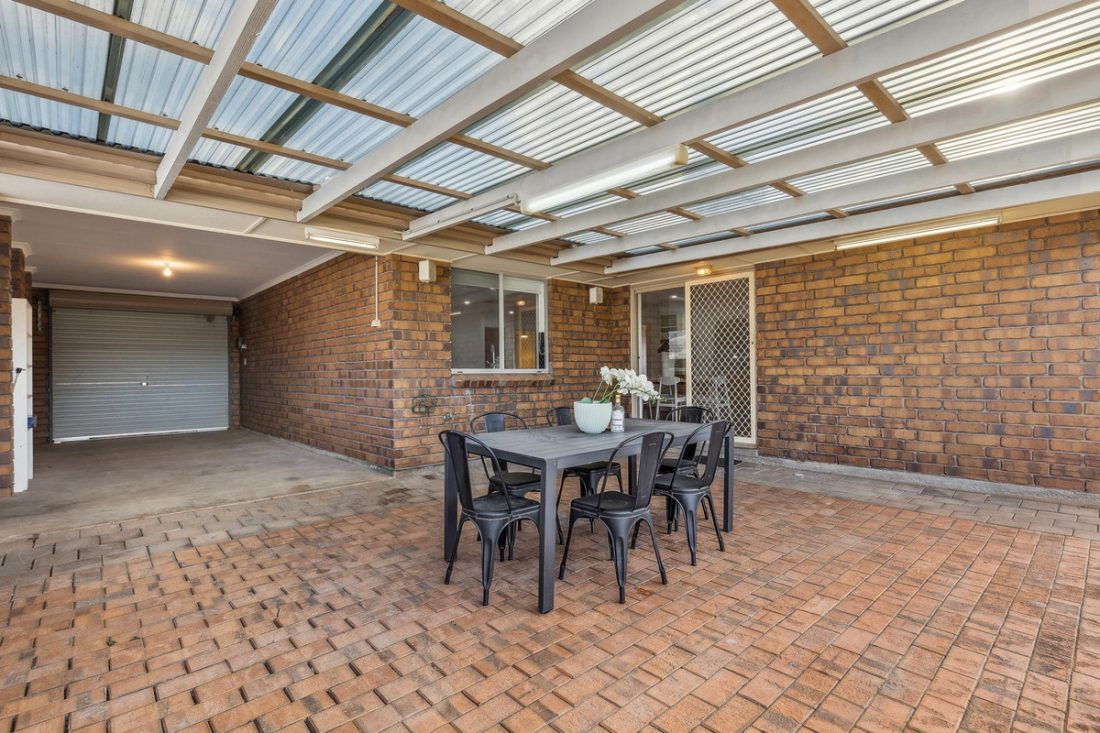 Stepping outside, the spotlight turns to a beautifully maintained backyard – a true haven for relaxation and enjoyment. A spacious verandah serves as the perfect setting for entertaining guests, while the immaculately maintained lawn beckons as an ideal playground for children or a carefree space for pets.
