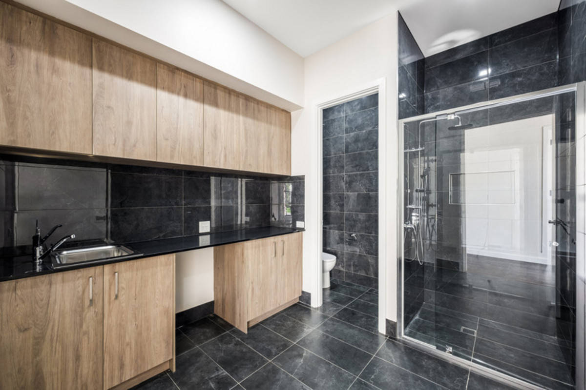 Inside, two participant bedrooms each enjoy their own private ensuite bathrooms, designed with open showers, ample circulation space, and modern finishes. A separate carer’s bedroom provides dedicated space to accommodate 24/7 support. A spacious main bathroom also integrates a built-in laundry for added functionality.
