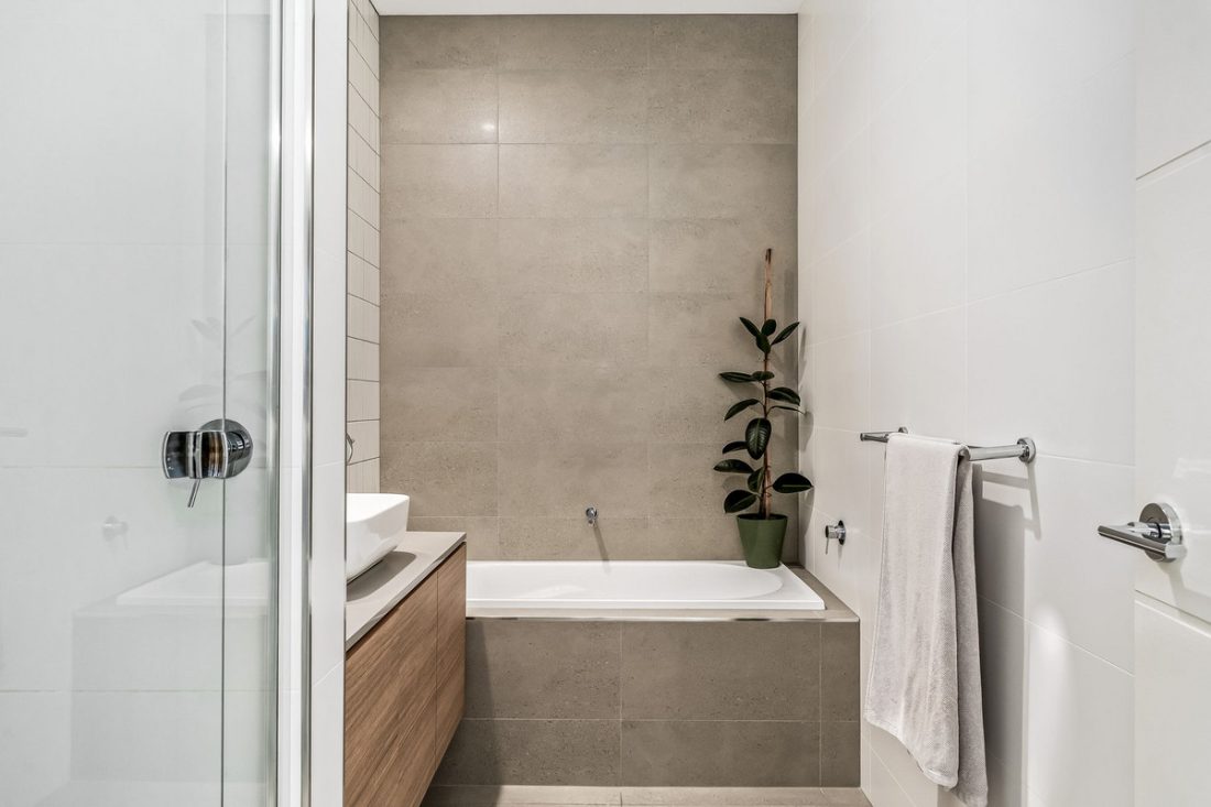 Bedrooms two and three located on the first floor offer comfort and privacy with built in robes, ceiling fans and plush carpeting. A sleek, modern bathroom services this level, complete with floor-to-ceiling tiling and stone bench tops for that luxe feel. The upstairs living area also offers direct access to a private balcony – the perfect place to add a touch of greenery or enjoy your morning coffee in the sunshine.