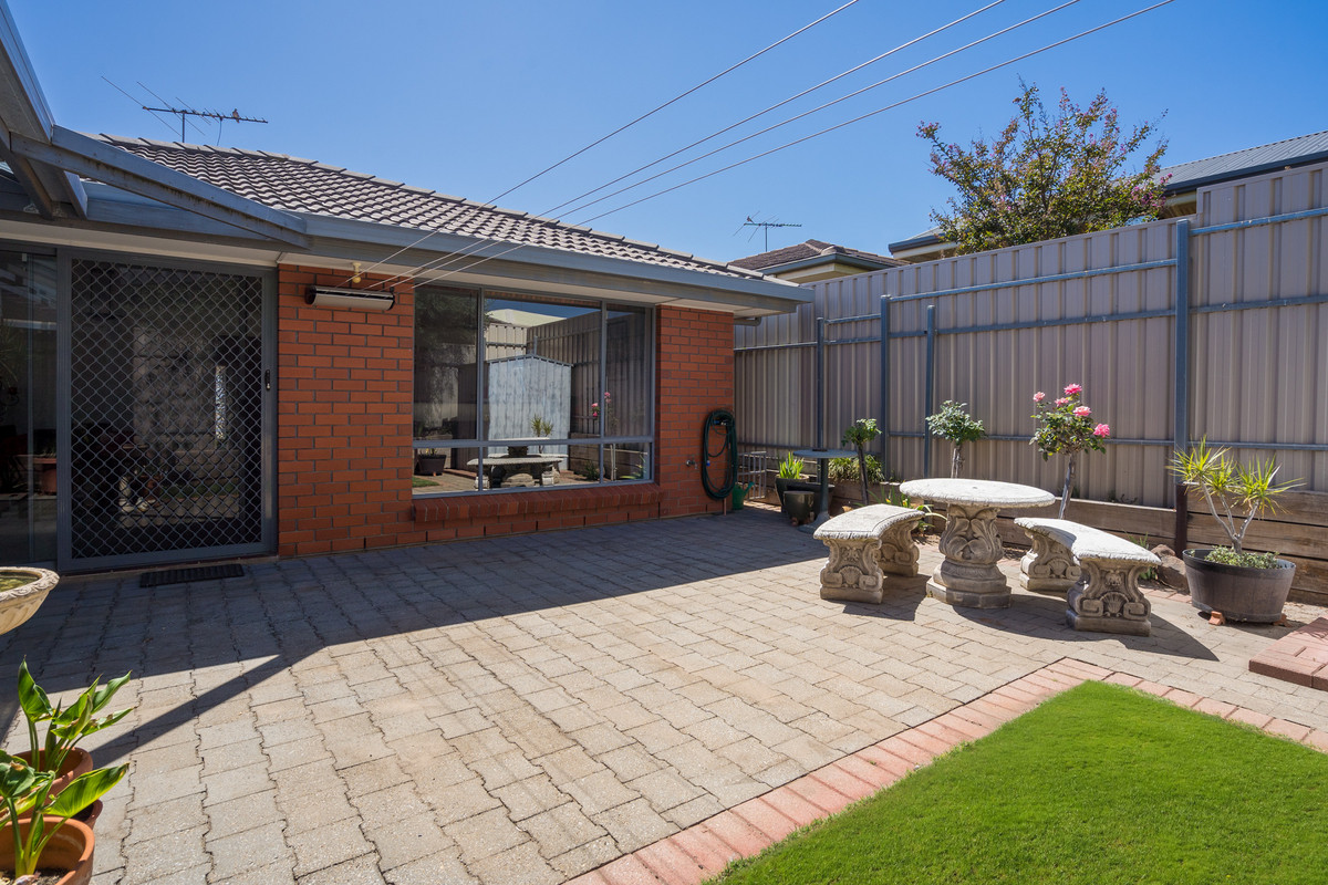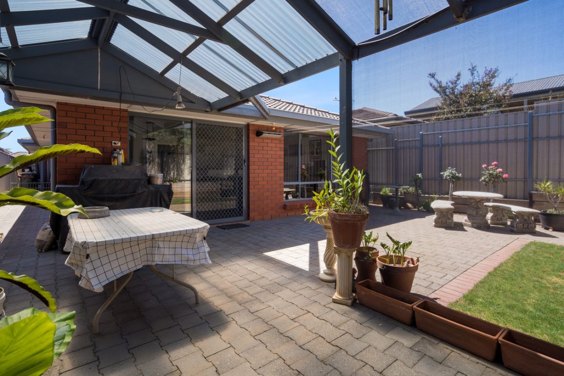 Large glass sliding doors seamlessly merge the living room with the outdoors, where a fantastic verandah sets the perfect stage for summer barbecues. Enjoy ample space for soaking up the sun and a manageable lawn area perfect for pets.