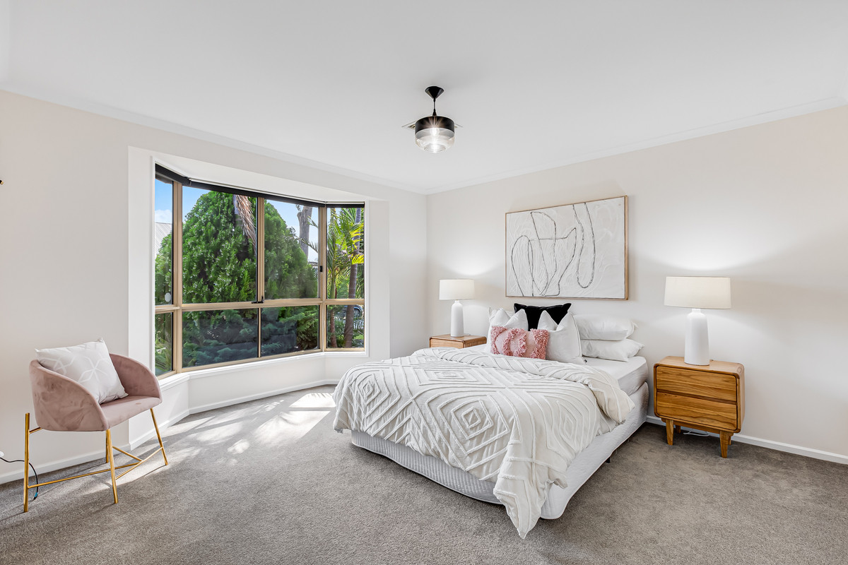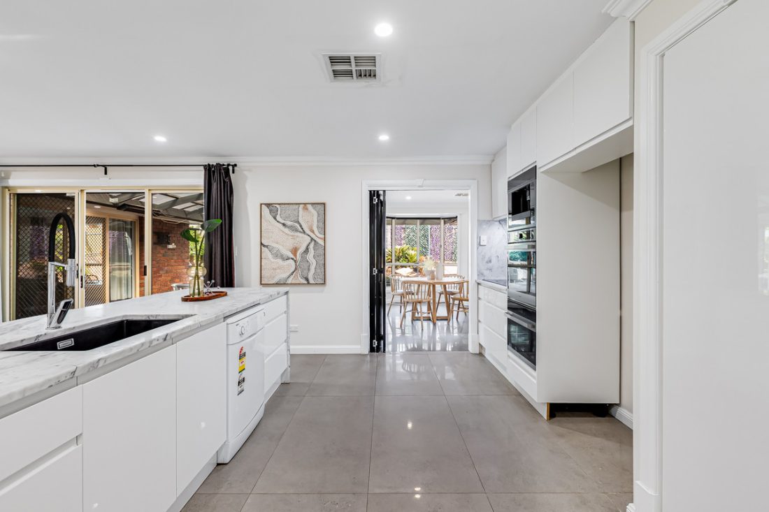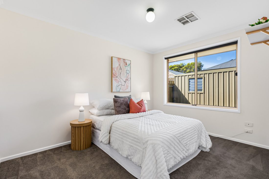 As if that weren’t enough, a spacious lounge room at the back of the home beckons for family movie nights. The master suite boasts a bay window, spacious renovated ensuite and one of the largest walk-in robes you will ever see. Three additional bedrooms, all adorned with plush carpeting and wide windows, offer comfort and style. Bed 2 also comes complete with a built-in robe.
