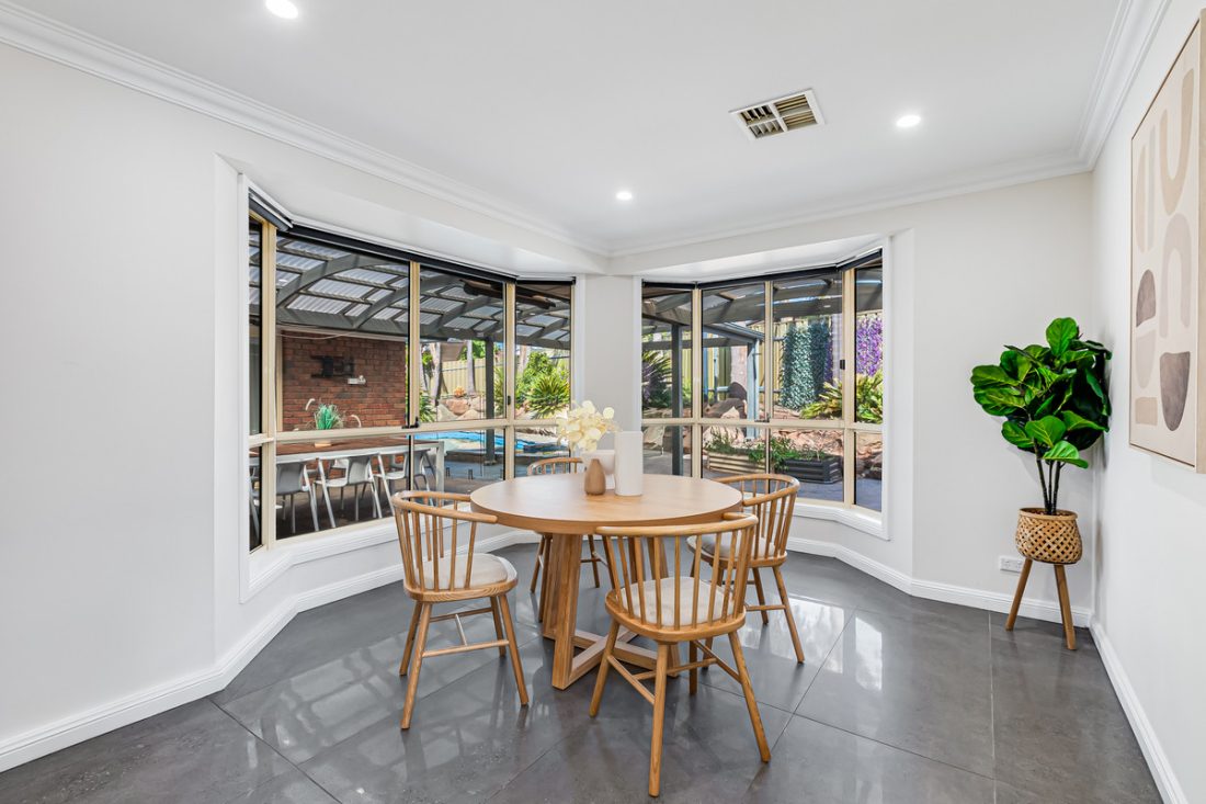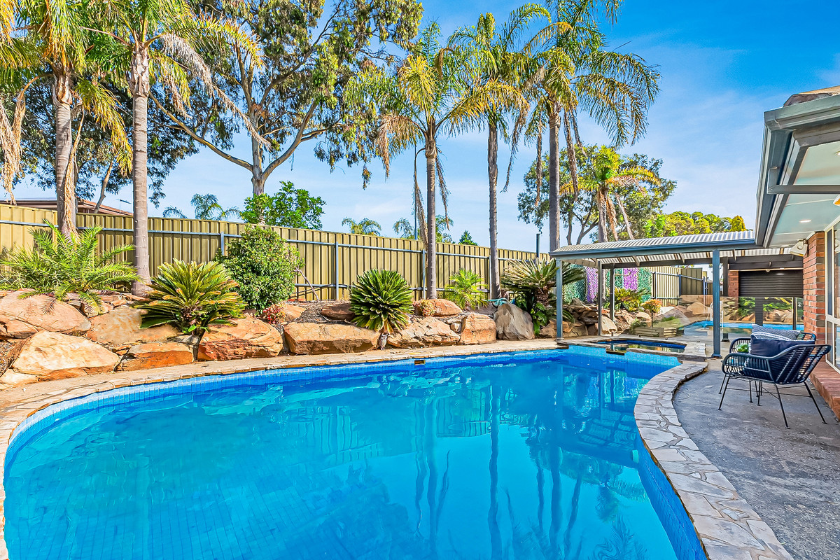An entertainer’s delight awaits outdoors with an enormous outdoor area featuring a large verandah with exposed aggregate pathways, seamlessly allowing dining to flow outdoors. The property boasts a large in-ground pool and spa just in time for summer, alongside an open area for the active family.