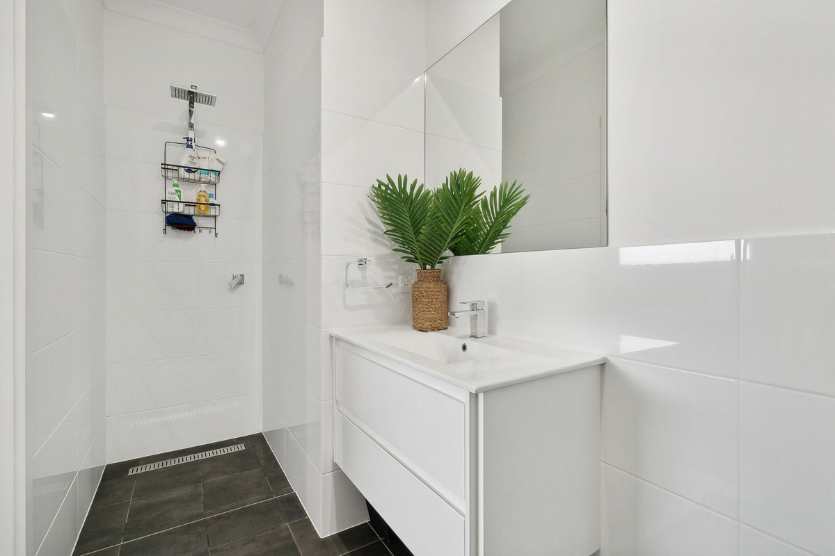 – Stylish bathrooms with crisp white tiling, sleek tap-ware, and ample storage