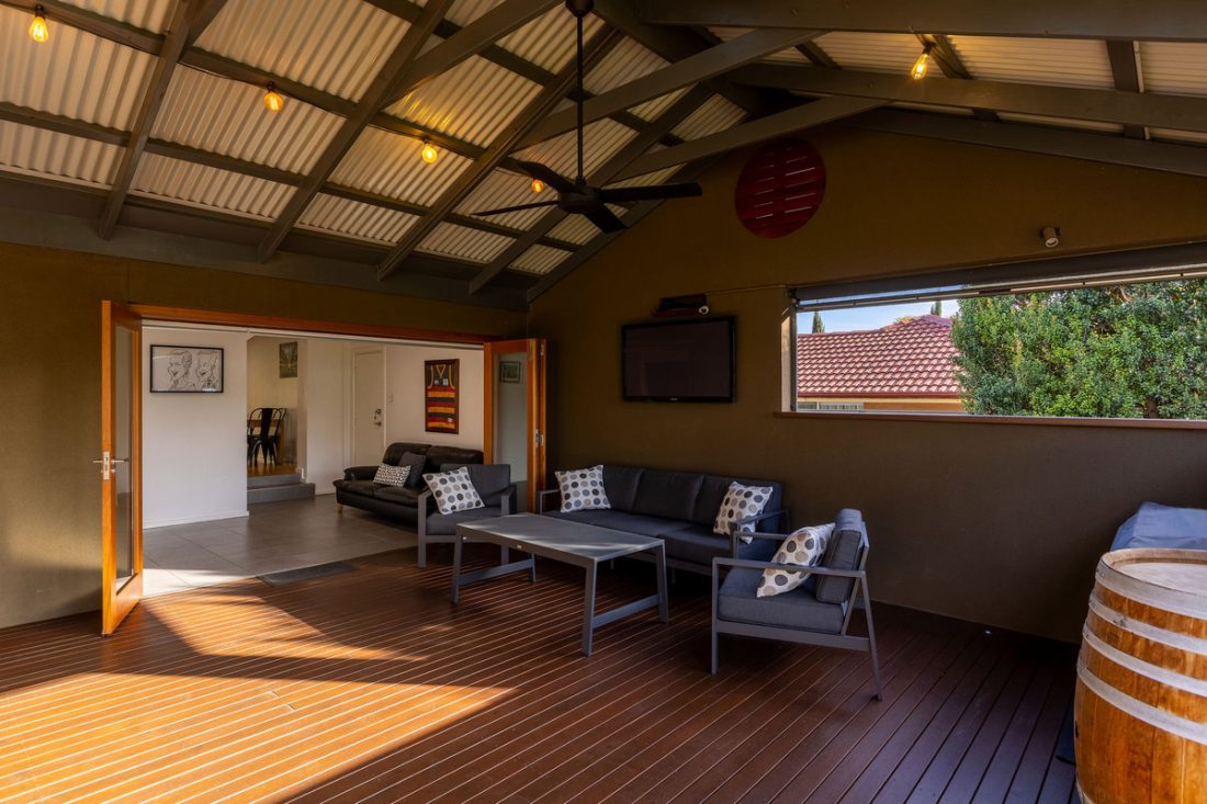 – Enormous all-weather outdoor entertaining zone with decking and pull-down blinds