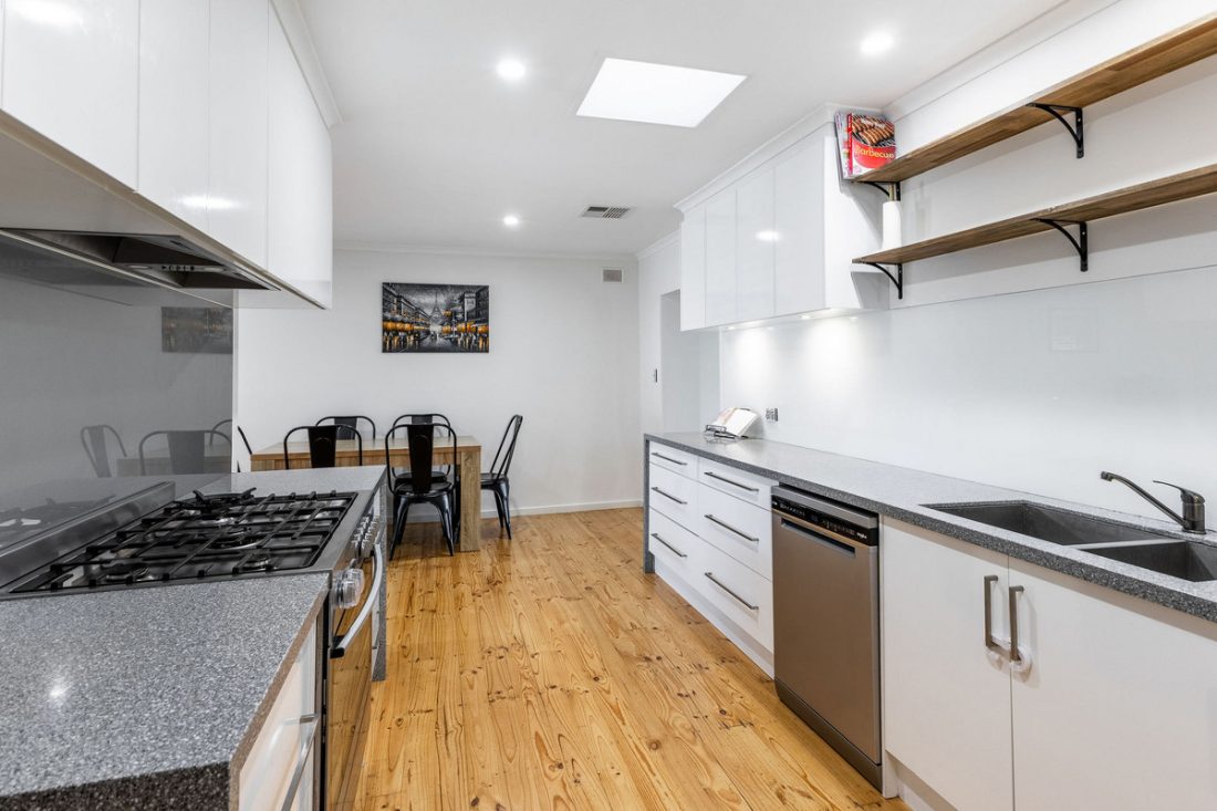 – Modern kitchen with 900mm gas cooktop, electric oven, dishwasher and more