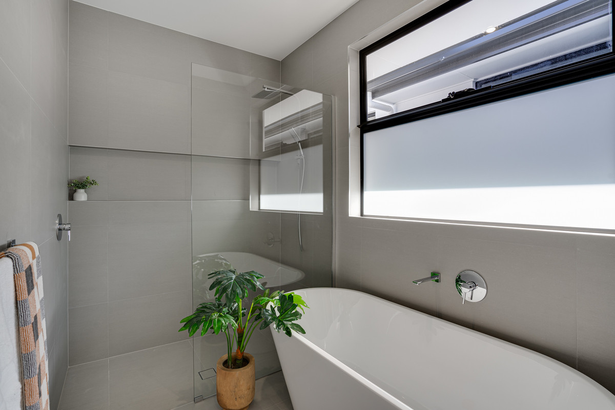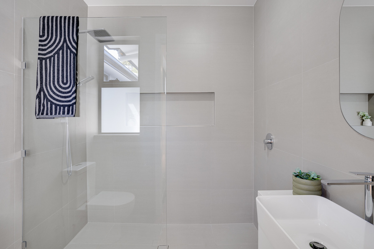 The luxurious bathrooms are complete with high quality fittings and fixtures, including beautiful stone bench-tops and floor-to-ceiling tiling. Here, you can indulge in generous showers and a luxurious free-standing bathtub. The main bathroom is thoughtfully laid out with a seperate water closet, ensuring convenience and practicality for the family.