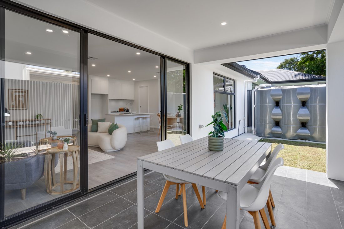 Slide open the large doors, and your living space seamlessly extends into the alfresco area, creating a harmonious indoor-outdoor experience. This space is destined to become the perfect spot for outdoor BBQs with friends and family, perfect for the warmer months. Adjacent to this, an area of lawn invites you to bask in the sun, offers a playground for your pets, and provides children with an enclosed play area.