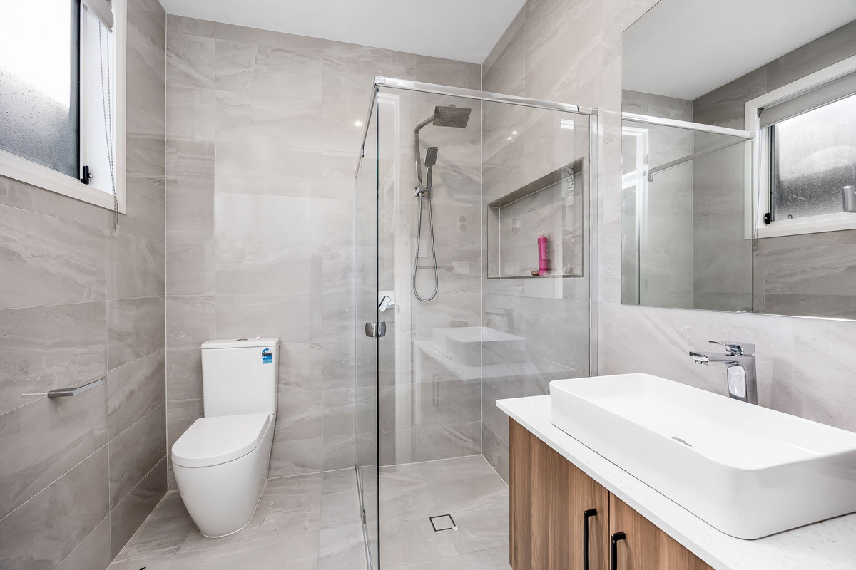 Each of the three bedrooms is fitted with plush carpet for added comfort. The master bedroom delivers a touch of luxury with a walk-in robe and a private ensuite, while the main bathroom boasts floor-to-ceiling tiles, chrome fixtures, a bathtub, and separate shower – all finished to a high standard.
