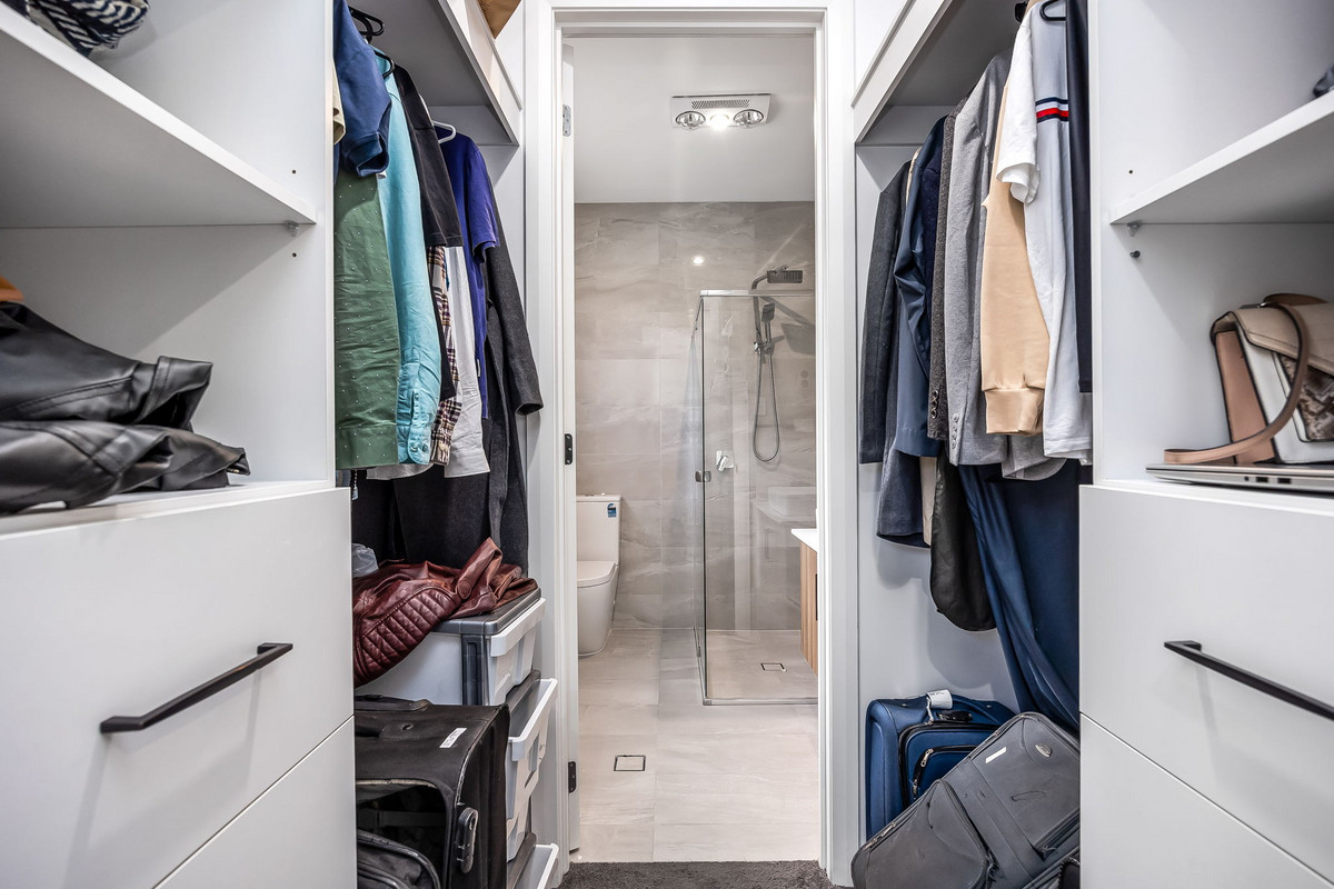 – Master bedroom with plush carpet, walk-in robe, and private ensuite