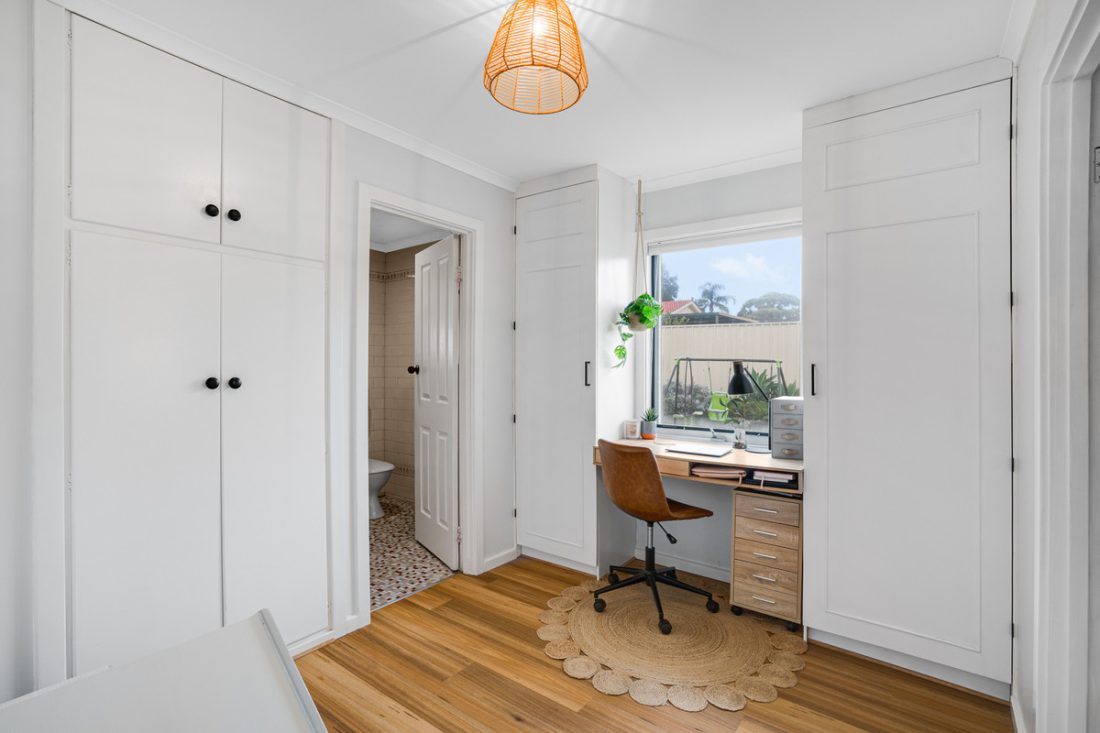 An additional study room with built-in-storage can serve as a home office, playroom, or even an extra bedroom – tailor it to suit your preferences effortlessly. Both bathrooms in this home have been refreshed with updated fixtures, ensuring a neat and tidy appearance throughout.