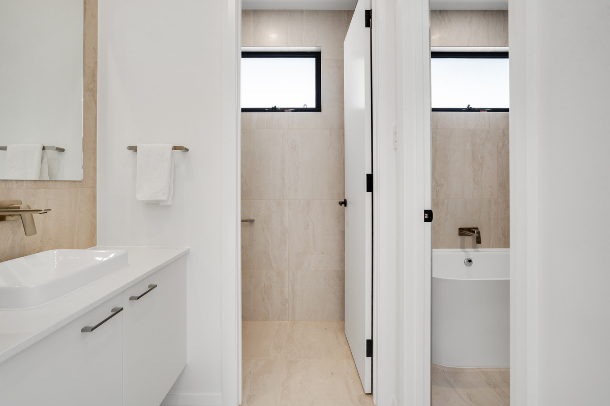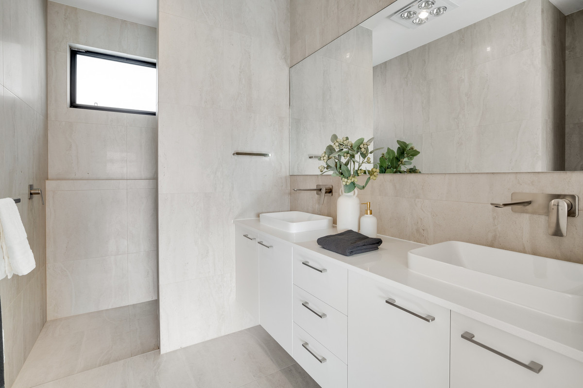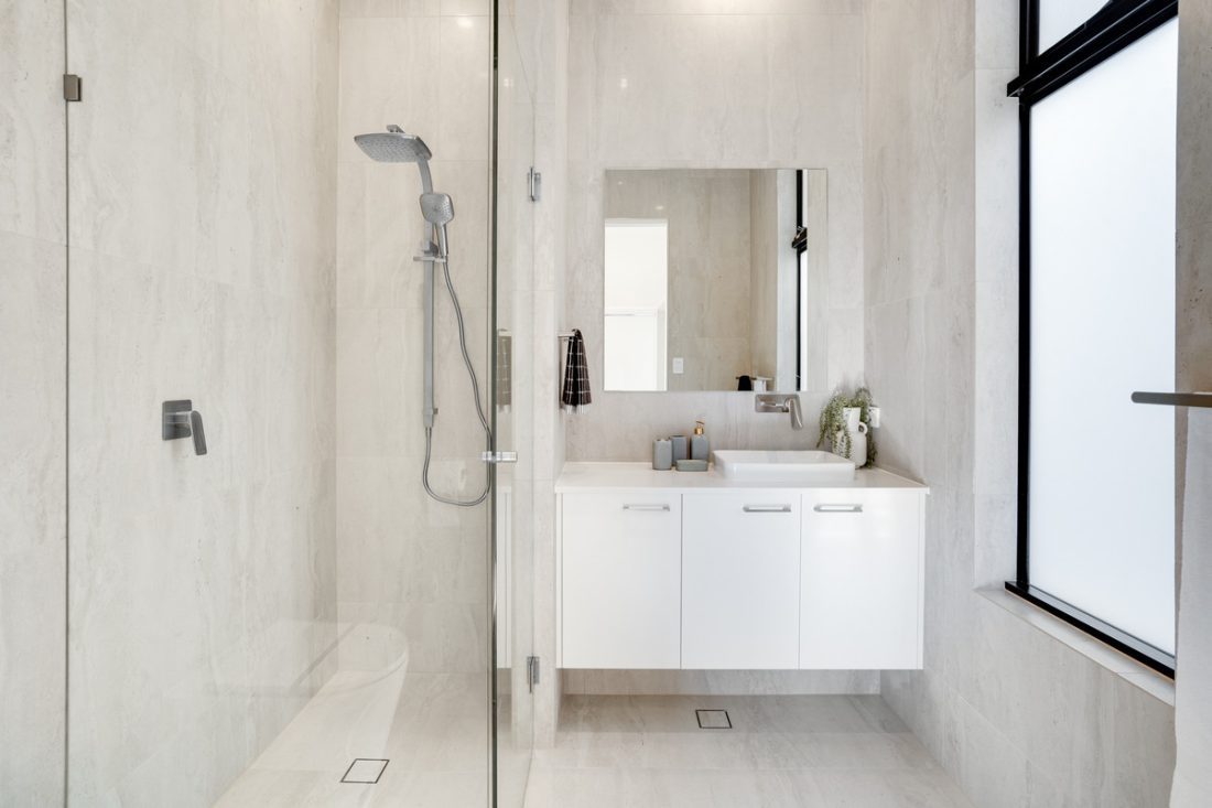 – All bathrooms finished with floor-to-ceiling tiles and stone benchtops