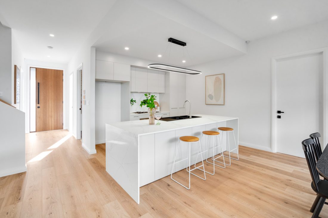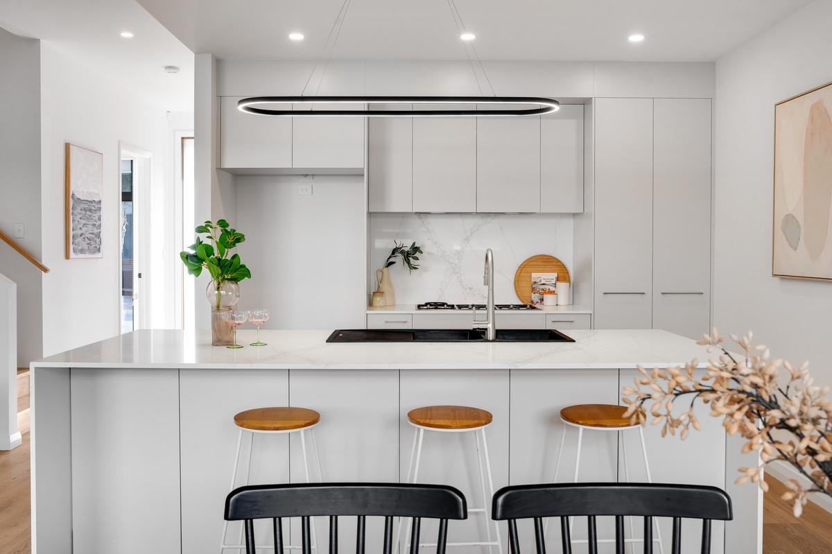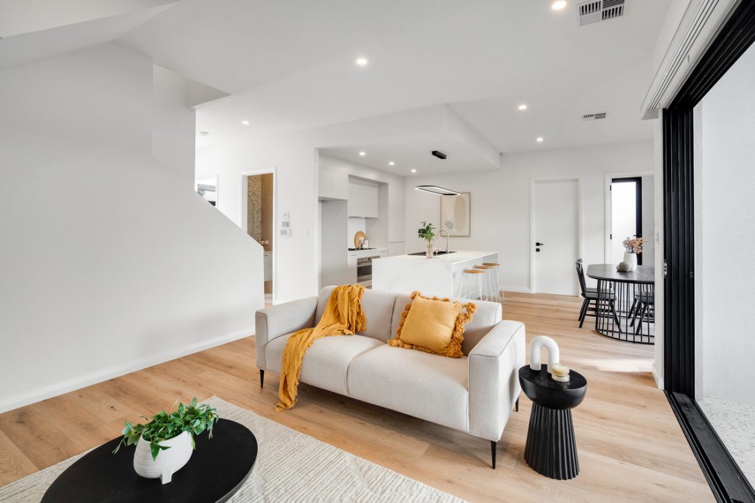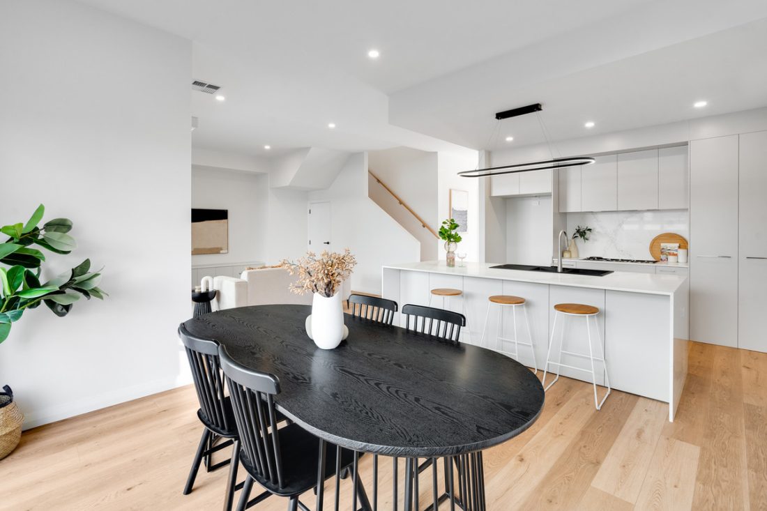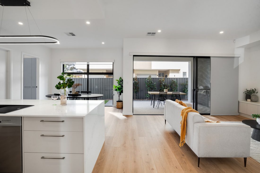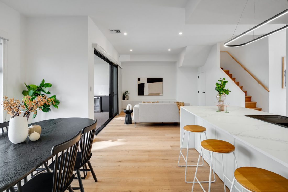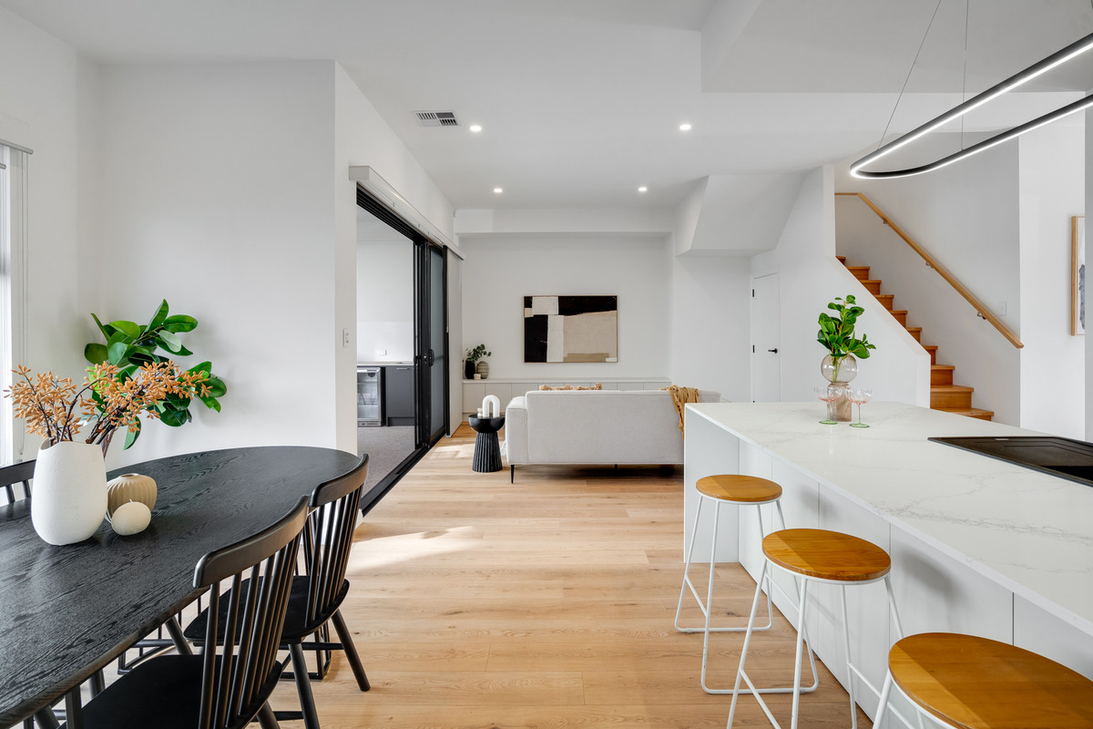 Say hello to this stunning two-storey home that combines modern style with thoughtful functionality in leafy Magill. Step inside and be greeted by soft timber floors and neutral tones, creating a warm and inviting atmosphere throughout. The spacious open-plan kitchen, living, and dining area is filled with natural light, thanks to the home’s large feature windows. Perfect for entertaining, the kitchen boasts stone benchtops, a central island with breakfast bar, gas cooktop, oven, pendant lighting, and a walk-in pantry.